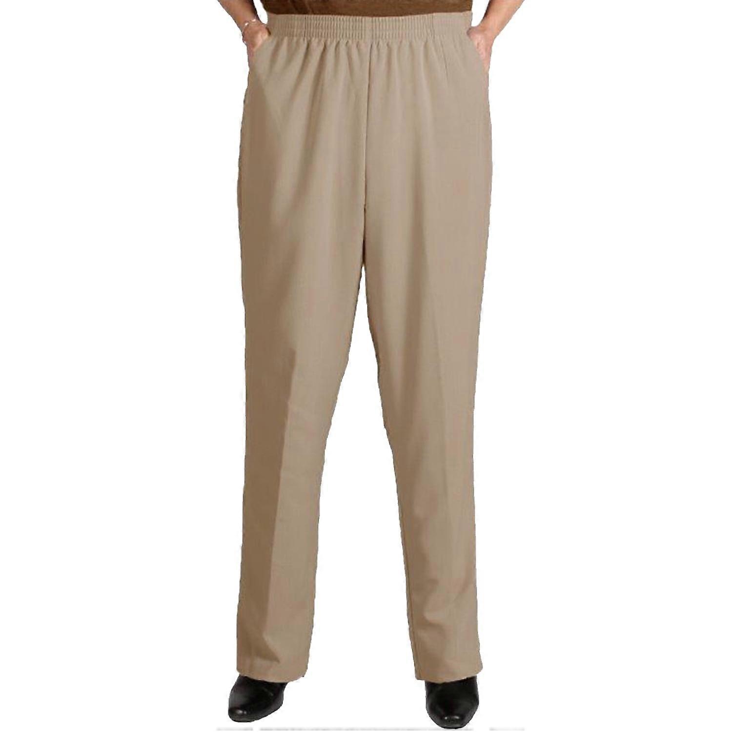 Women's Plus Size Elastic Waist Pull-On Shaped Fit Dress Pants with Pockets - Khaki - 20WP