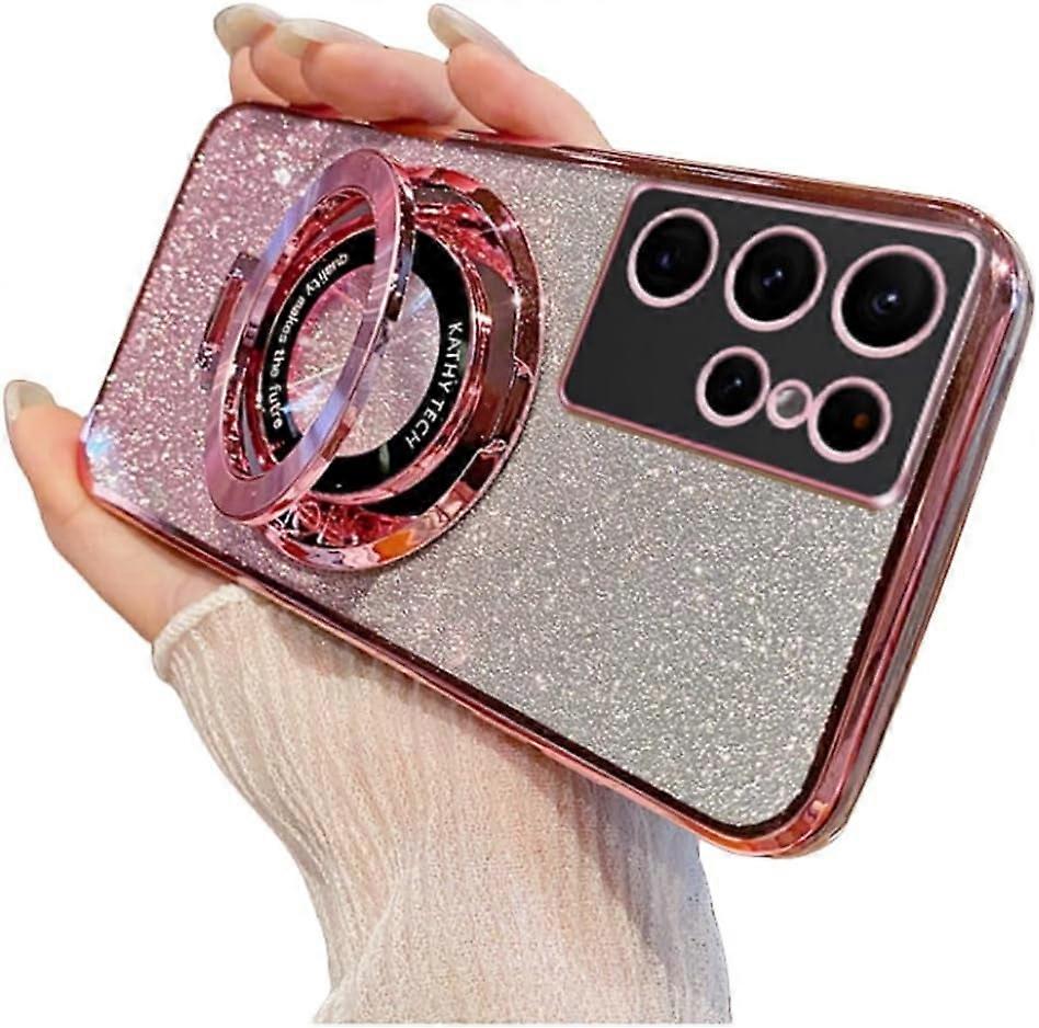 Gradient Electroplating Glitter Phone Case with Hidden Finger Ring Holder, Compatible with Samsung Galaxy S24/S23/S22/S21/S10 Ultra/Plus/FE (Pink,