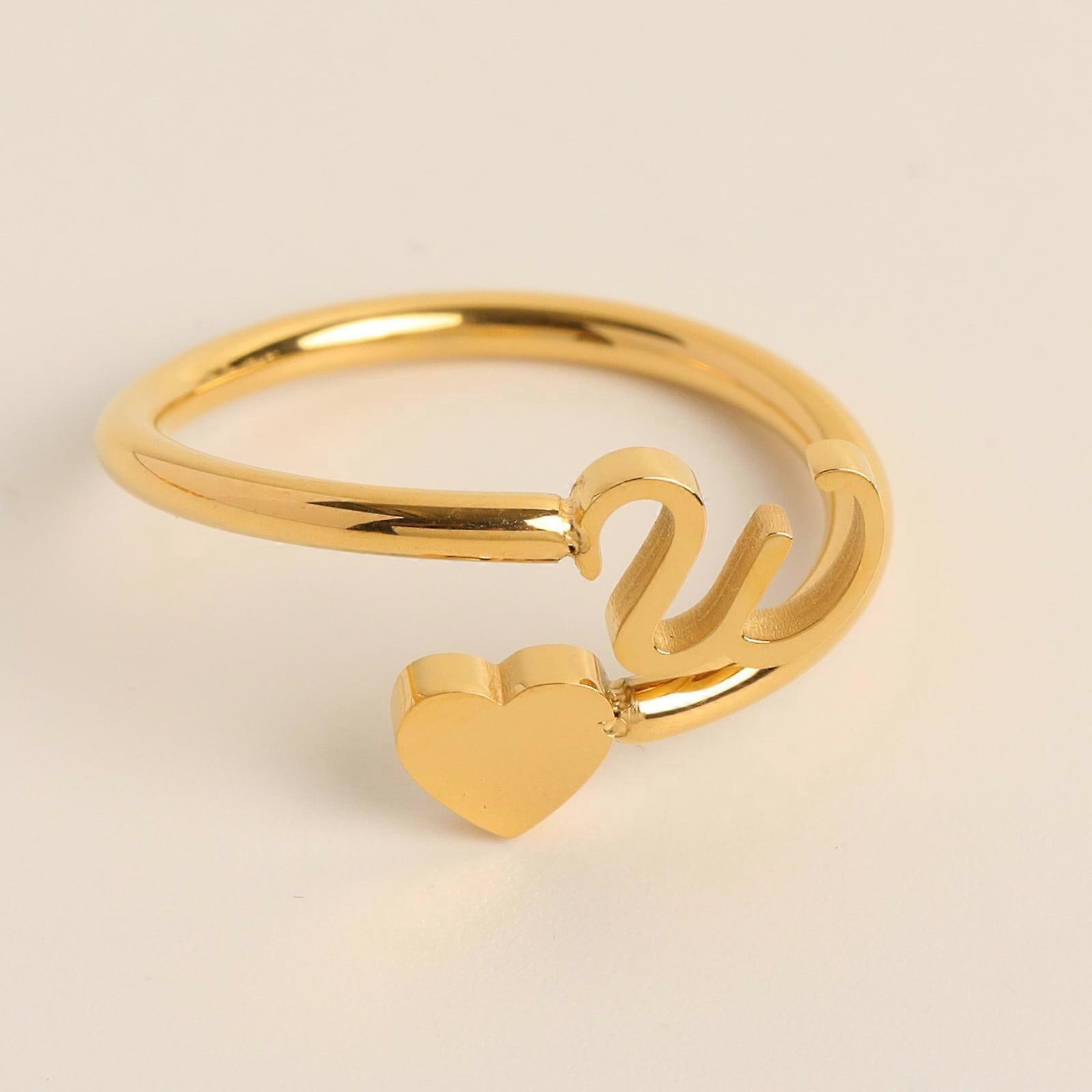 To My Granddaughter Initial Heart Ring 26 Letter Heart Ring Simple Fashion Jewelry Popular Accessories Rings W