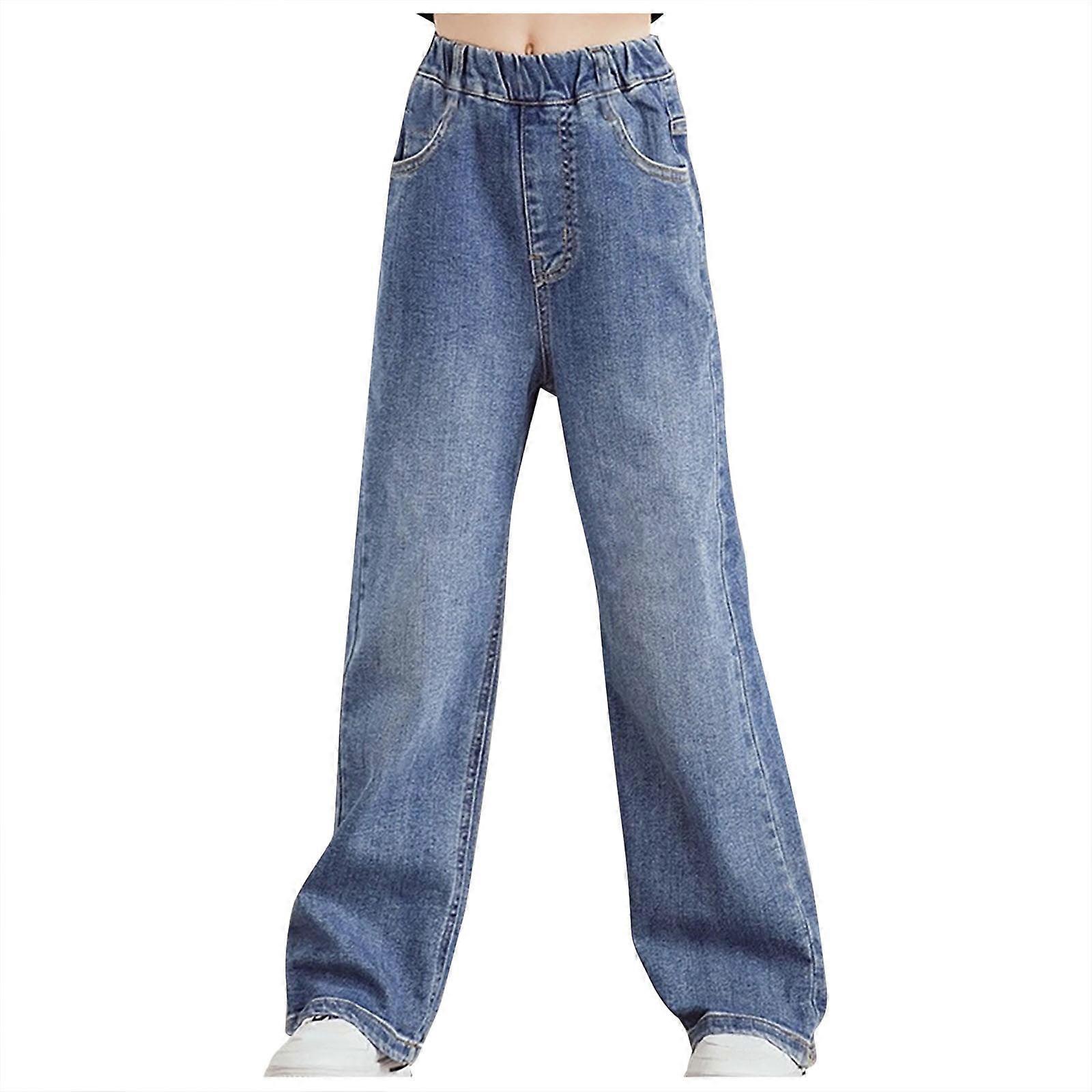 FFENYAN Girls Blue Denim Pants with Pockets – Casual Comfortable Jeans for Spring & Summer, Compatible with Kids’ Everyday Wear