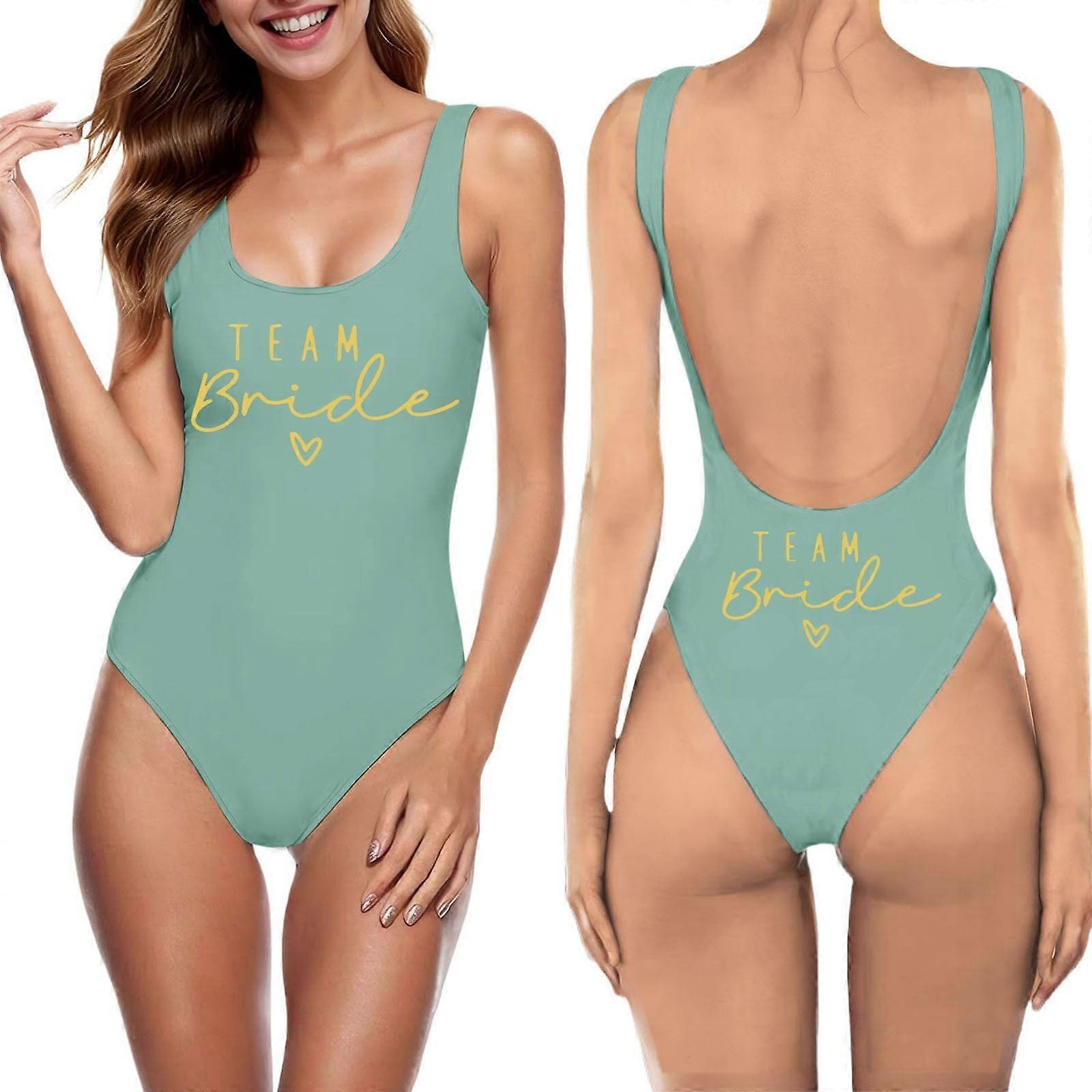 One Piece Swimsuit Women, Letter Print Bikini Set, Removable Padded Top, High Waisted, Sleeveless, Mint Green, XL