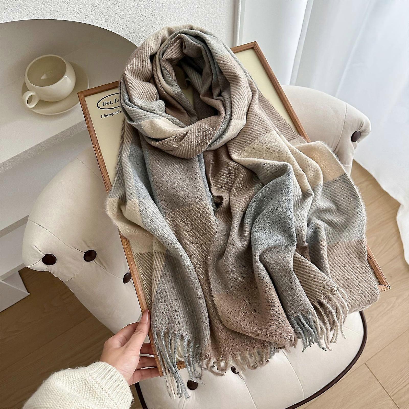 Classic Square High-end Shawl Soft Skin-friendly Fringed Plaid Scarf Warm Couple Scarf Light Gray