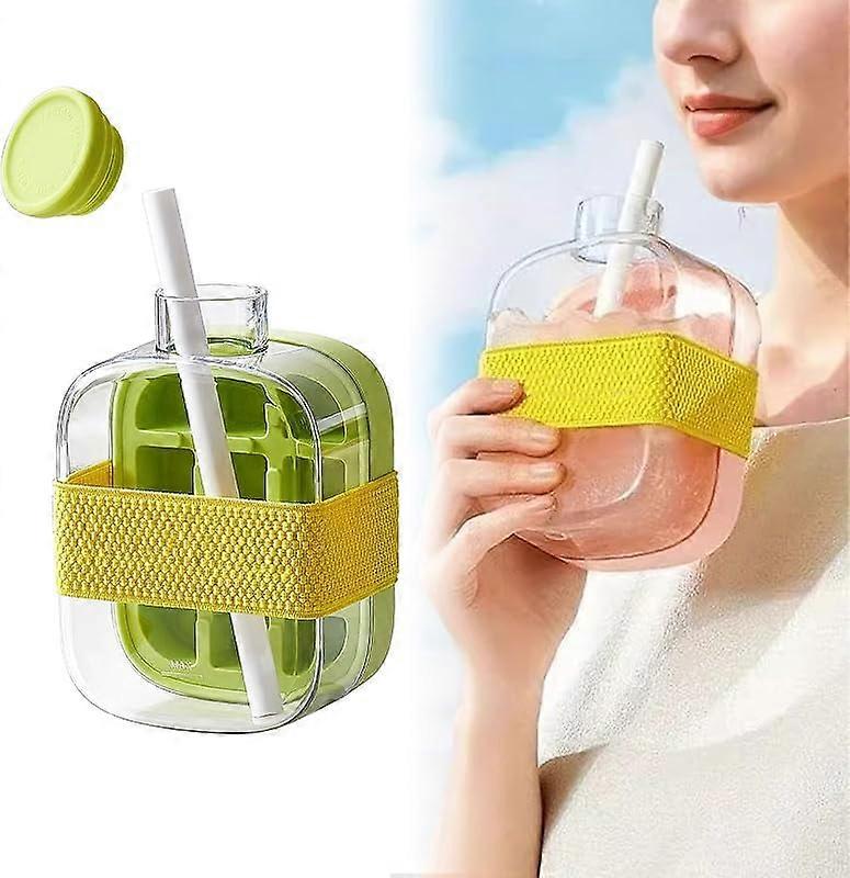 Ice Bottle Cup, 2025 New 2 in 1 Ice Cube Mold Water Bottle with Lid and Bin, Zero Touch Press Ice Cube Bottle (Pink, 800ml)