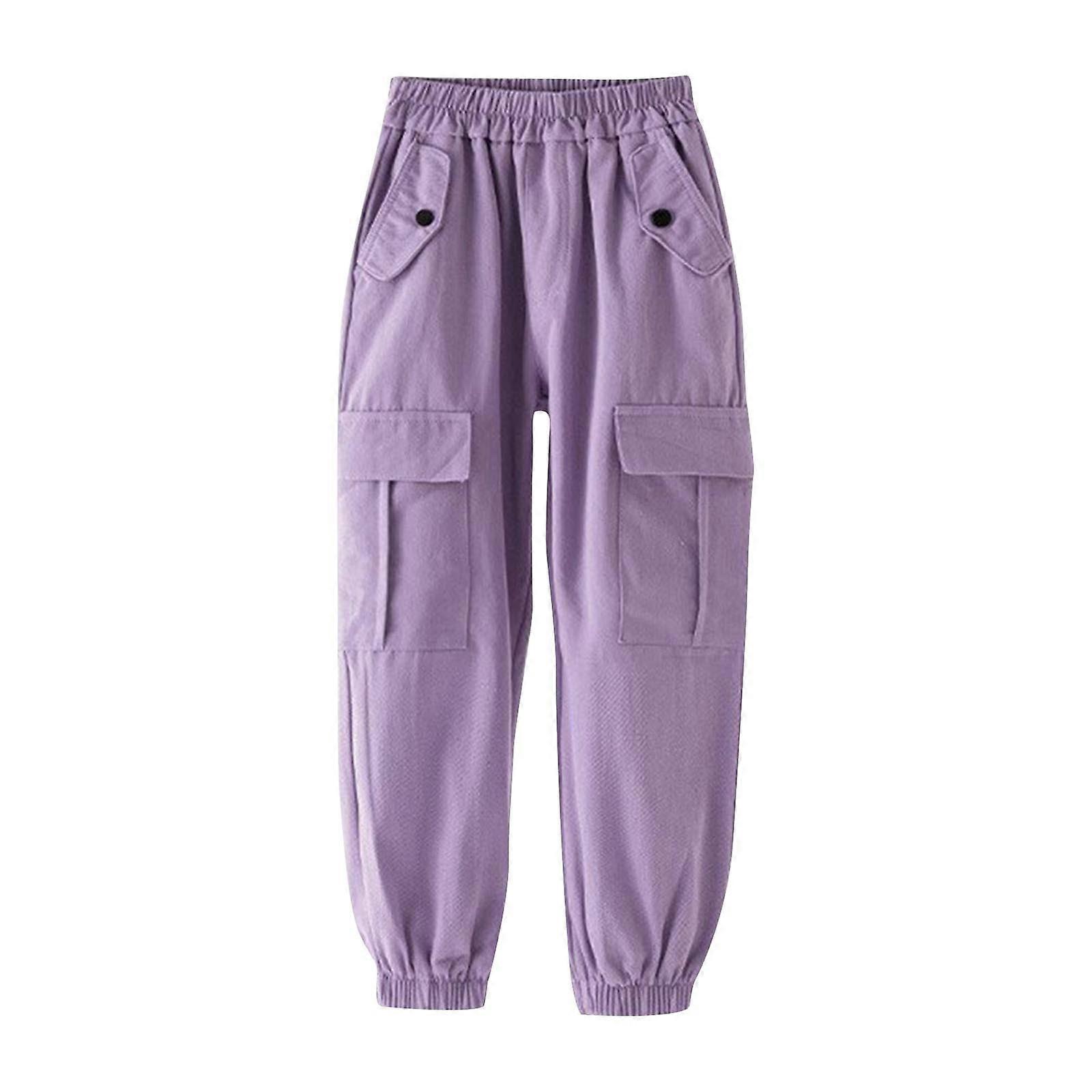 Kids Girls Cargo Pants Cotton Jogger Pants Children Super Cool Pants Casual Wear Pants Kids Clothes Purple