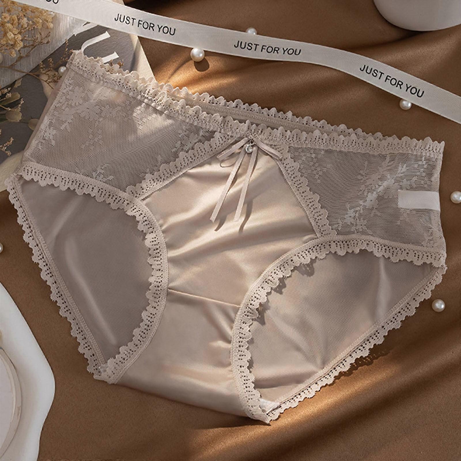 lulshou Womens Underwear Romantic Lace Women's Briefs Comfortable & Soft Fabric Sexy Semi-Sheer Underwear, Khaki, L
