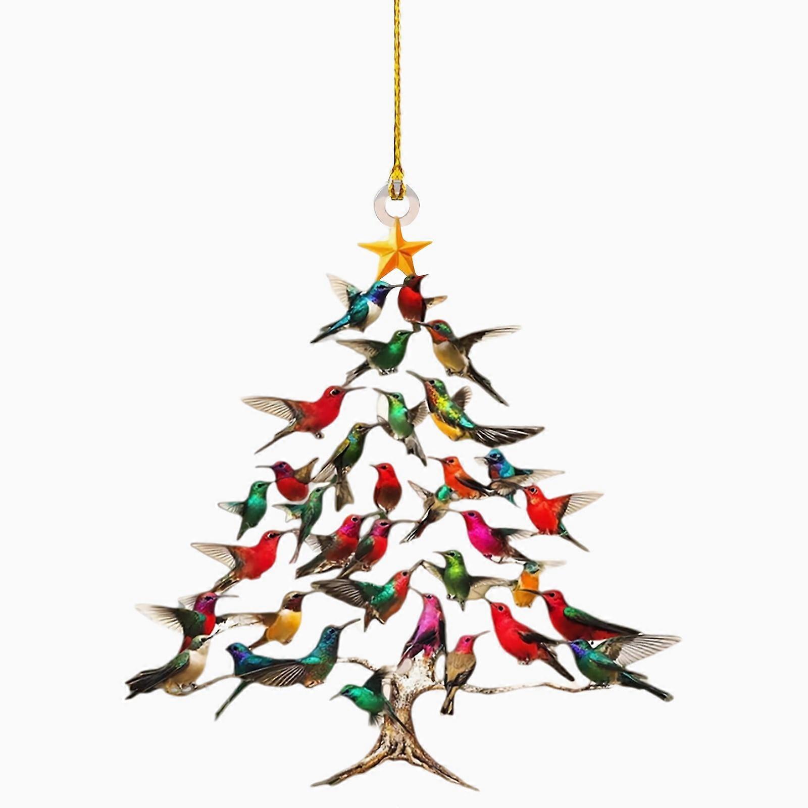 Hummingbird Christmas Ornament – Colorful Stacked Bird Tree Decor, Winter Home Decoration for Bird Lovers