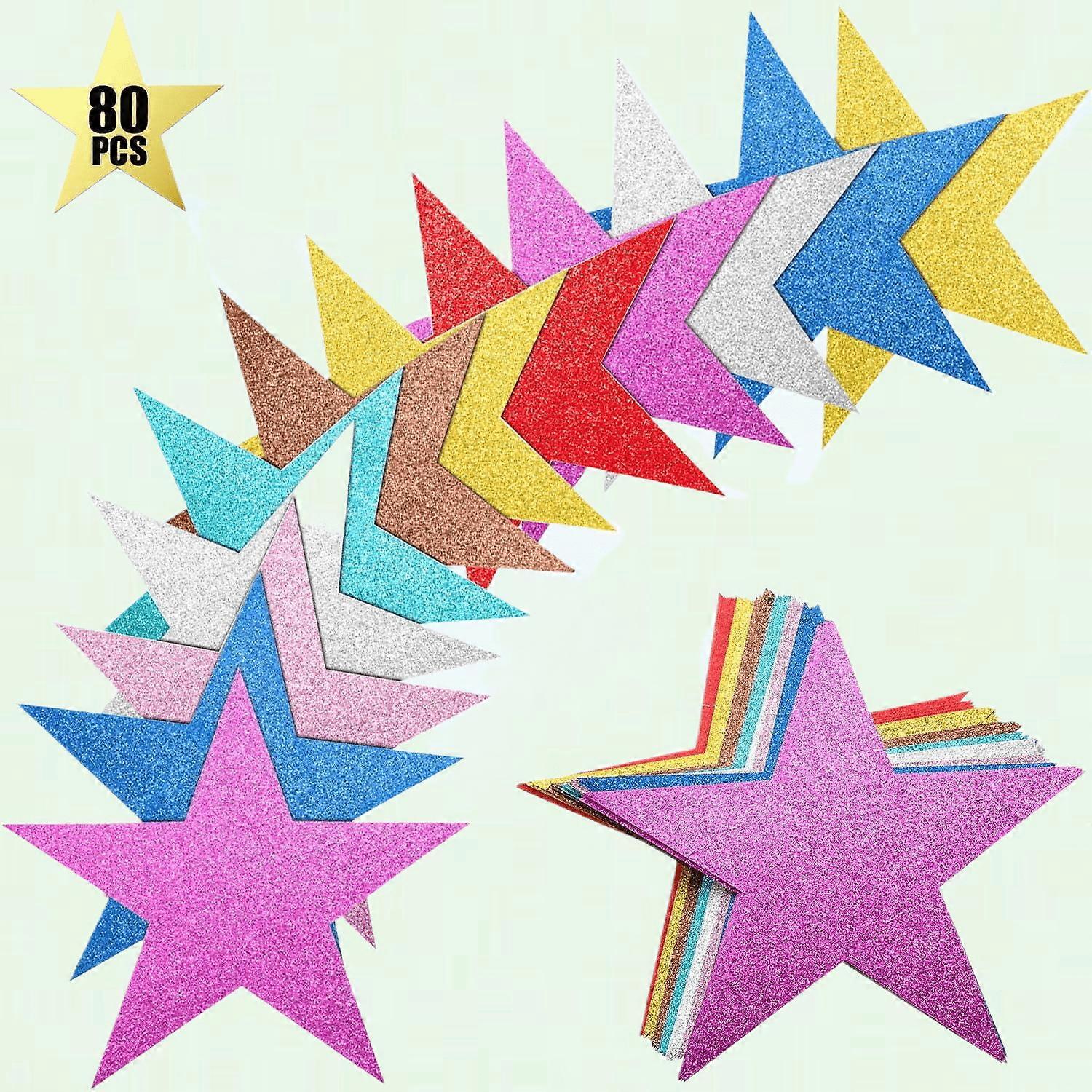 80 Pieces Glitter Star Cutouts, Rich Colors, 6 Inches Length, for Bulletin Board Classroom Wall Party Decoration Supply