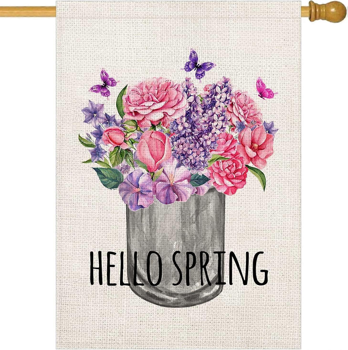 Spring Floral Garden Flag 28x40", Double-Sided Peony & Butterfly Design, Vertical Yard Flag for Farmhouse Décor