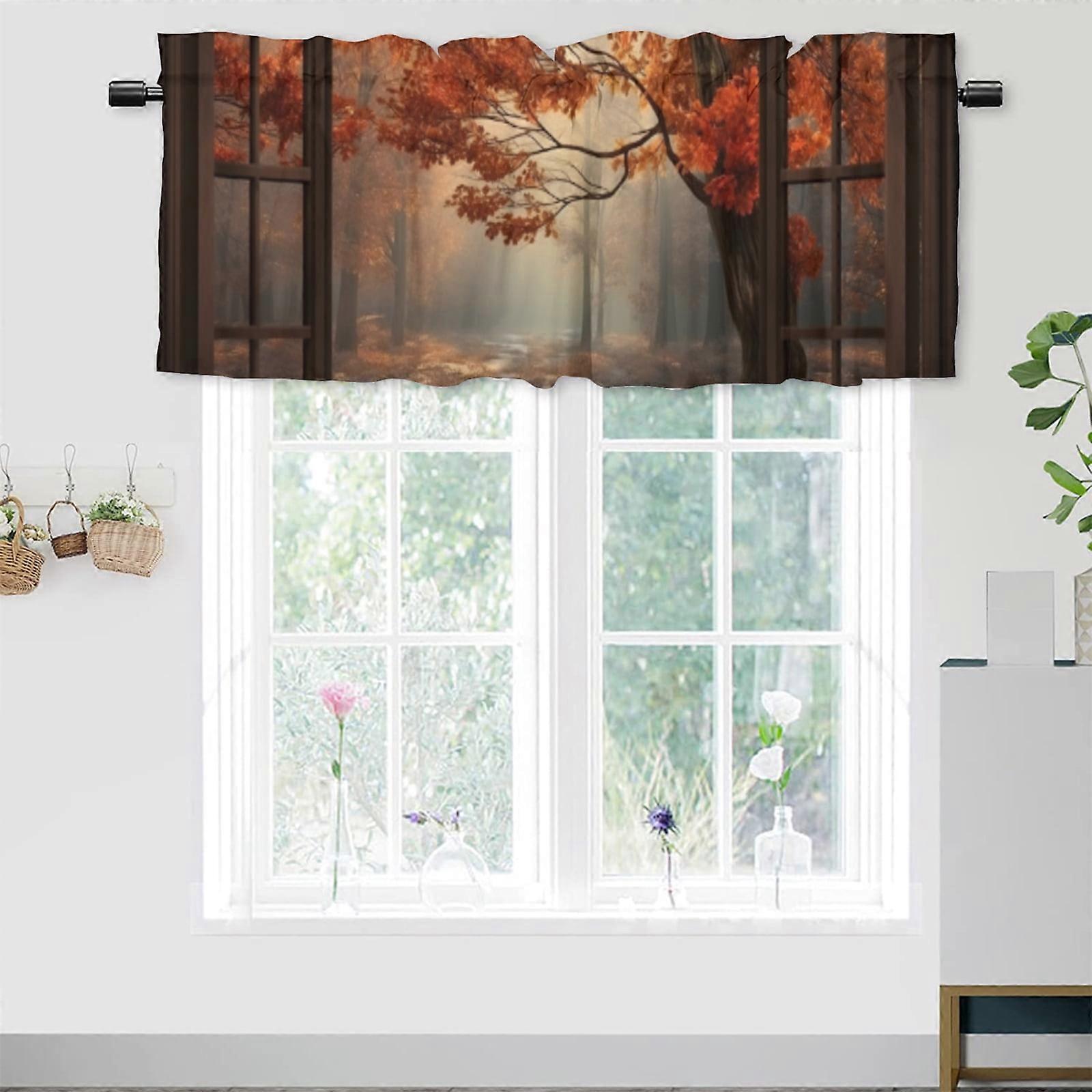 Autumn Kitchen Window Curtain Valance Maple Leaf Natural Landscape Vintage Window Window Treatment Valance Curtains for Bathroom 54 by 18 in, 1 Panel