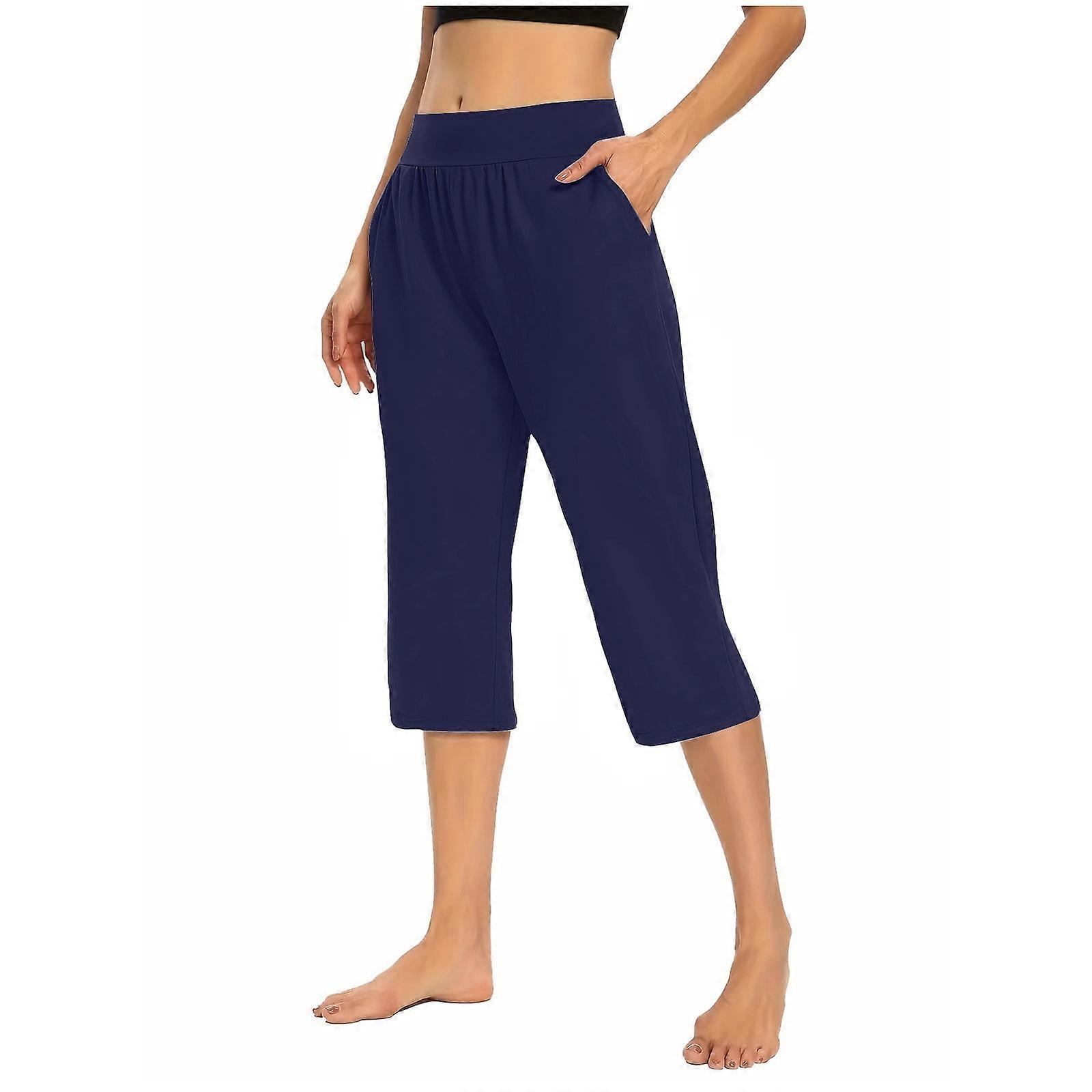Women's Loose Fit Capris with Pockets Plus Size 4XL-5XL 7/8 Length Gabardine Yoga Pants High Waist Athletic Wear