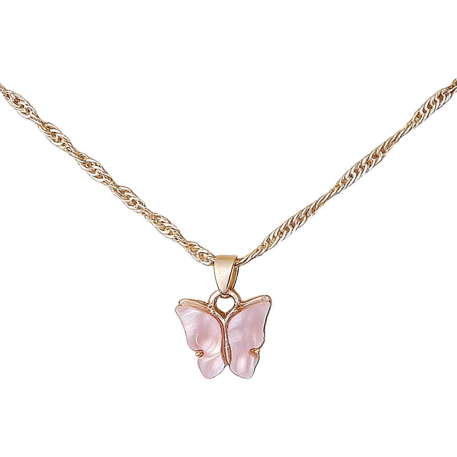 Colorful Acrylic Butterfly Pendant Necklace, Adjustable Retro Card Clavicle Chain, Necklace for Women Friend Friendship Party Jewelry Gift