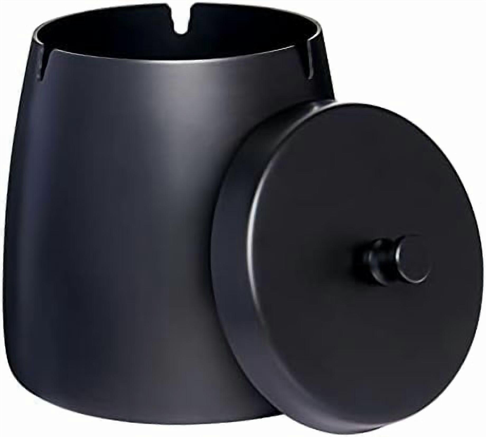 X-Large Black Smokeless Ashtray with Lid, Windproof & Waterproof for Outdoor Patio, Compatible with Cigarettes/Cigars