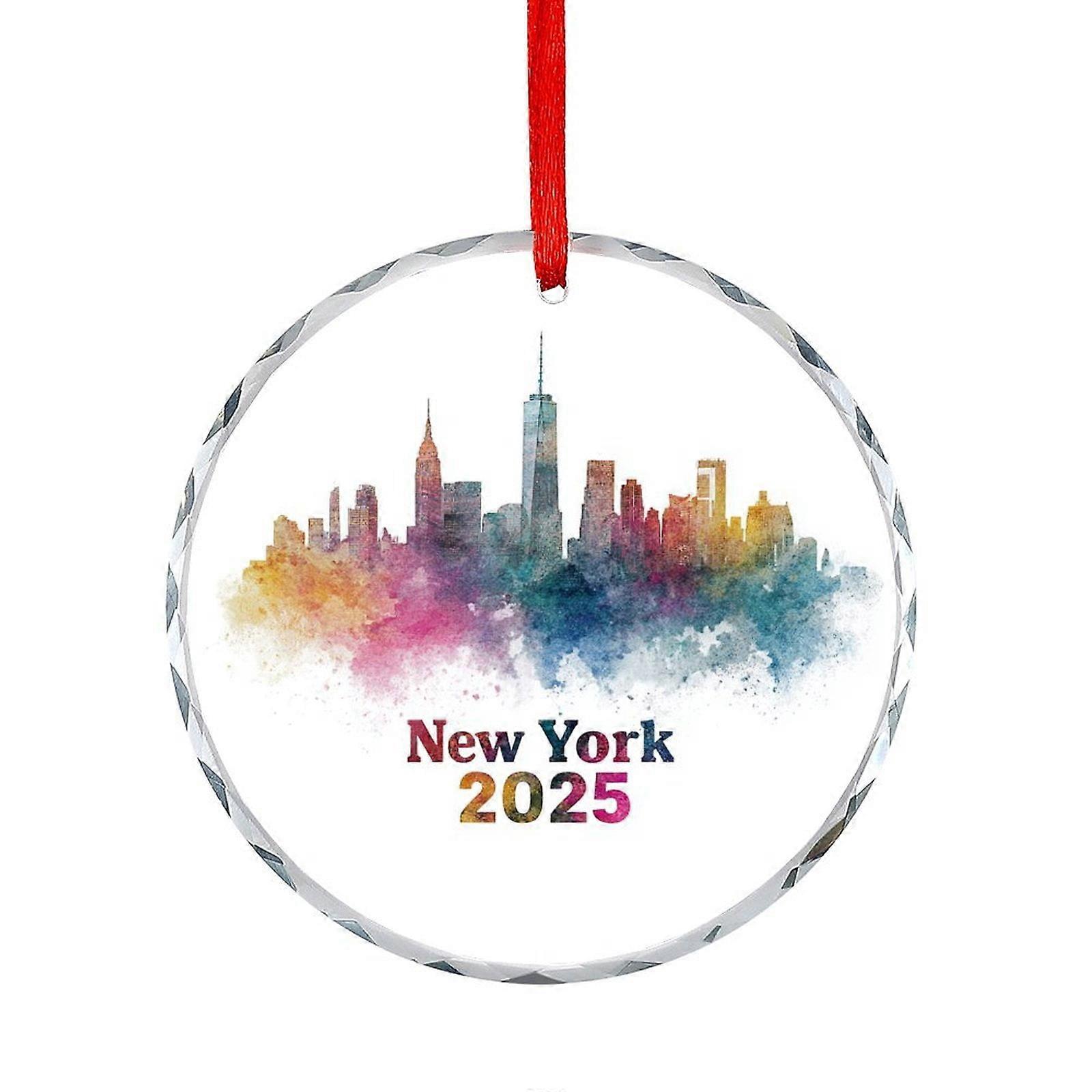 Crystal Glass Christmas Ornament Watercolor New York Skyline Round Glass Christmas Ornaments New York City Building Gifts for Women