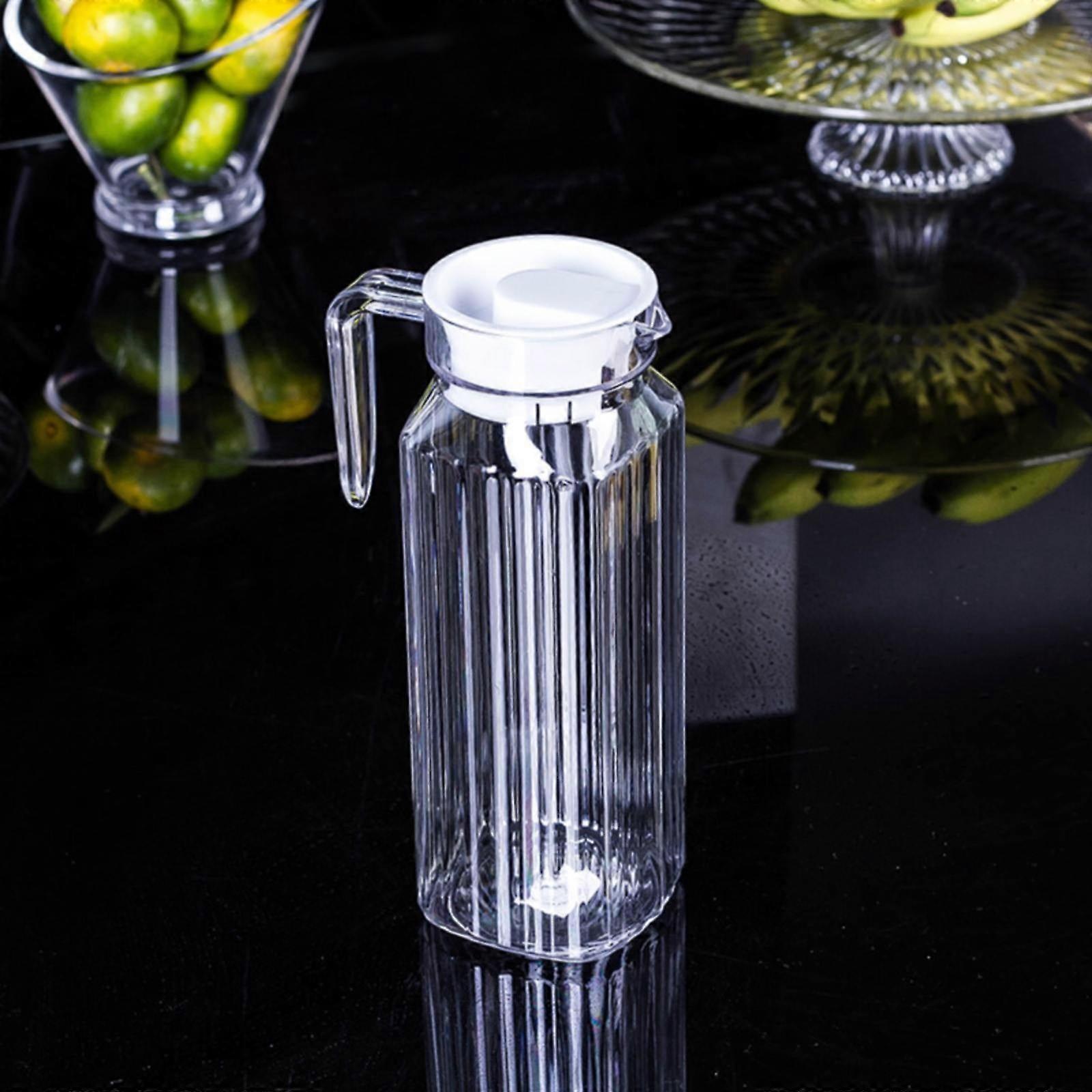 Glass Pitcher With Lid For Refrigerator Beverage Dispenser With Handle Bpa Free Plastic Cover For Water Juice Iced Tea