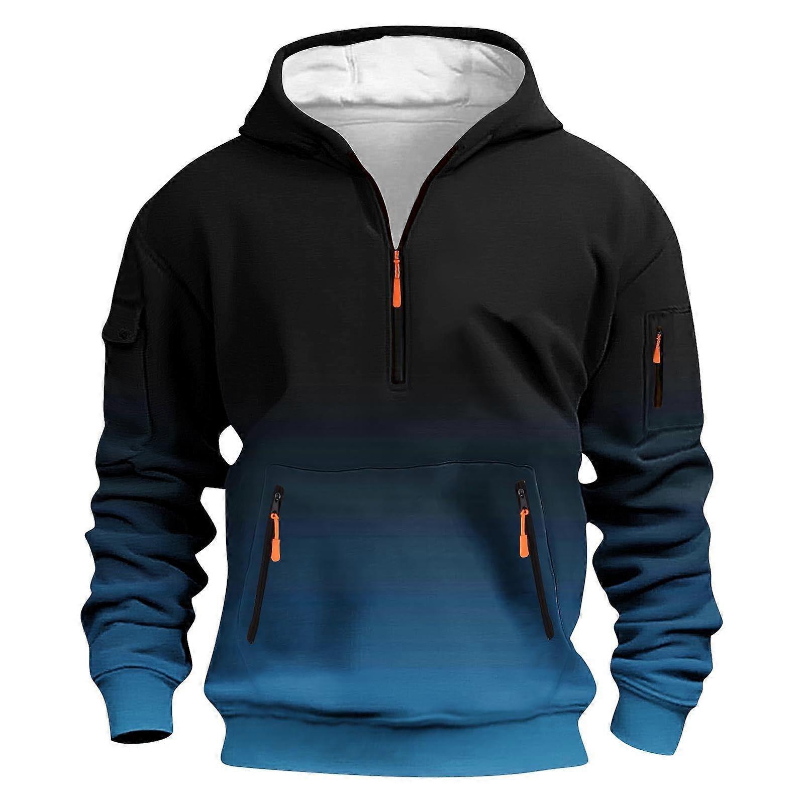 SYMOID Men’s Half Zip Gradient Hoodie - Navy, Size XS, Soft Stretch Polyester Blend with Multiple Zippered Pockets & Orange Zipper Pulls