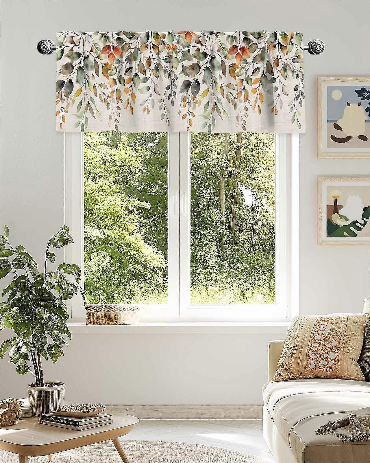 Sage Green Eucalyptus Orange Gradient Valance 42x12in, Linen Fall Leaves Design for Kitchen, Bedroom, Living Room, Bathroom