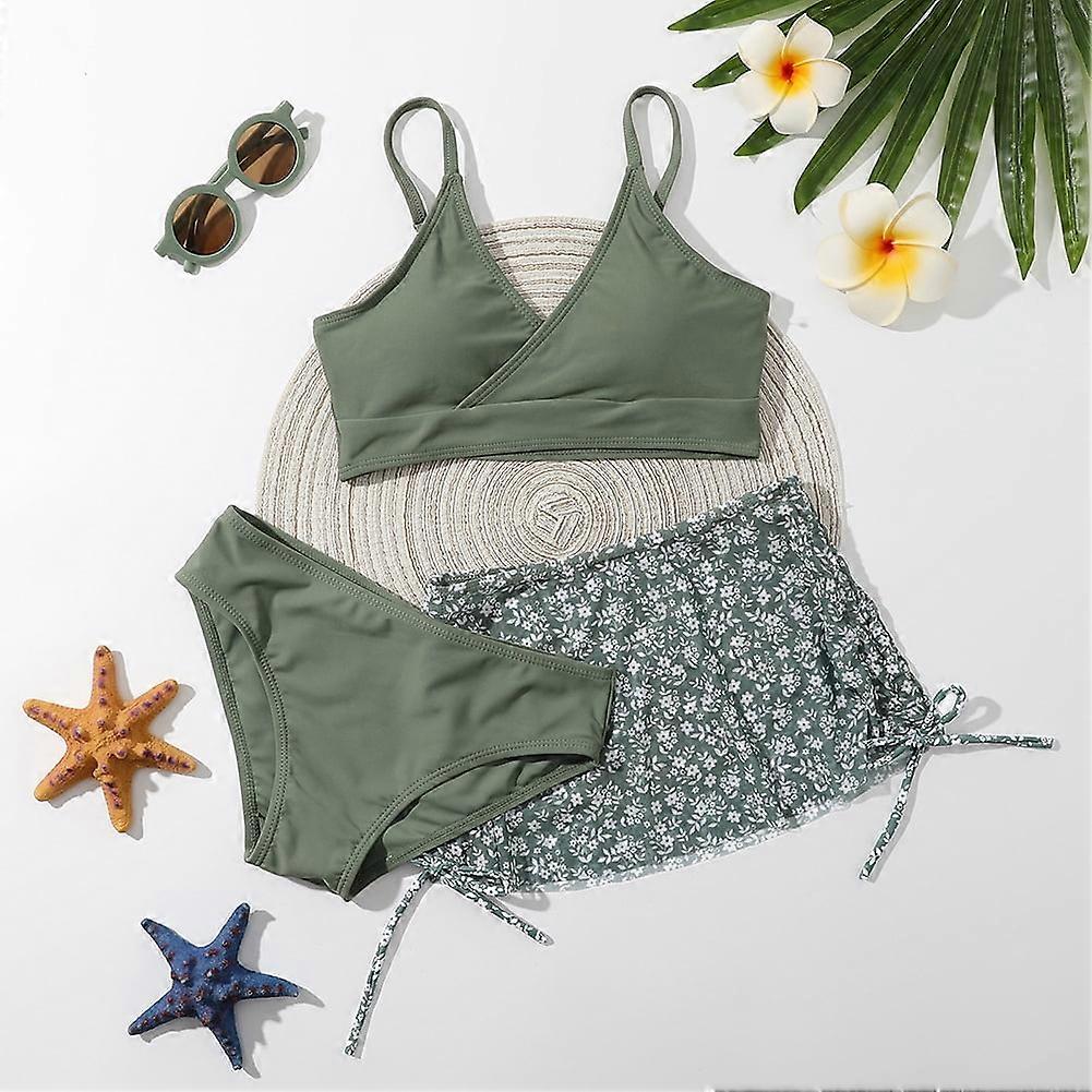 Keep your little girl fashion-forward this summer with our trendy girls summer swimsuits! This v-neck bikini sets collection features a variety of stylish designs, including floral, leaf, color block, and solid color patterns to suit every personality.Quick-drying and stretch material with padding that is breathable and lightweight, soft and skin-friendly. Bring cool wearing experience to girls in the hot summer and provide girls with maximum comfort and flexibility.Perfect for little/teen girls ages 8-16, this girl 3 piece swimsuit set is ideal for pool days, beach vacations, or casual summer outings. Whether she's lounging by the pool or enjoying sunny adventures, our summer girls bikini sets will keep her stylish and comfortable. Upgrade her swimwear collection today with this3 piece girl swimsuits! Material:Girls 3 pieces swimsuit is made of polyester and spandex,the fabric is quick dry and stretchy,soft and skin-friendly,breathable and lightweight,comfortable to wear. Features:This Bikini tops is design with criss cross,adjustable spaghetti straps,removable chest pads;high waisted bikini bottom,soft lining,matching with wrap cover up beach skirt,adjustable drawstring on the side,provide safe and full coverage,fancy pattern is perfect for the summer! Occasions:Our swimsuit for girls is perfect for beach,swimming pool,tanning,water park,spa,tropical vacation,etc.Make your kids look cute,fashionable and unique,be the unique and most striking princess on the beach! Size:Girls' swimwear fits for 8-16 years girls.Kids swimsuits girls 8-9 years,girls swimsuits size 9-10,teen bathing suits for girls 11-12,juniors swimsuit for girls 13-14,girls swimsuits size 15-16,bathing suits for teens,teen bikini. Girls'swimwear includes:1* bikini top + 1*swimsuit bottom + 1*beach cover up skirt