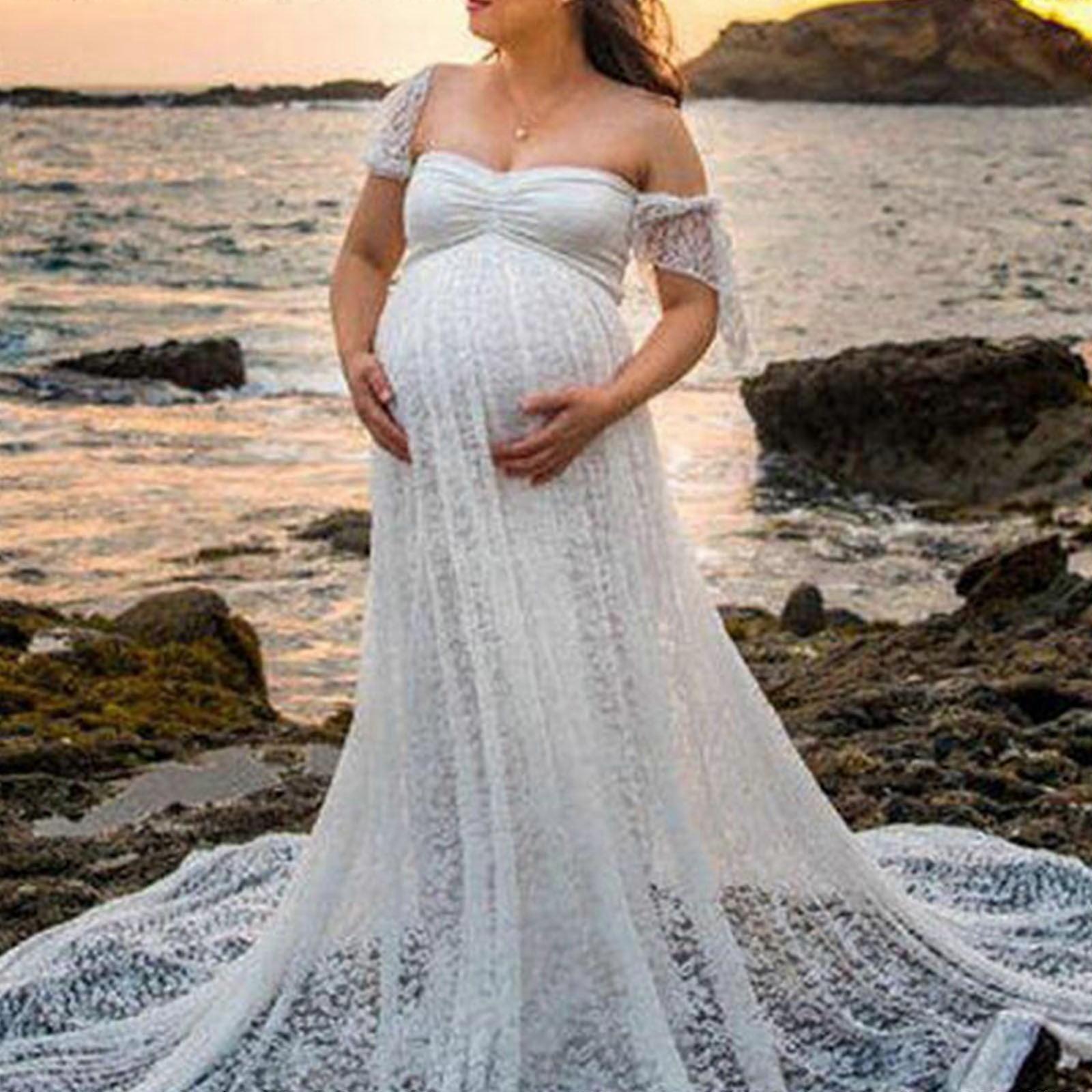Maternity Dresses For Women Women's Casual Boho V-Neck Lace Dress Maternity Gown Dress Photography Maxi Dress for Baby Shower Looming Back,C-White L