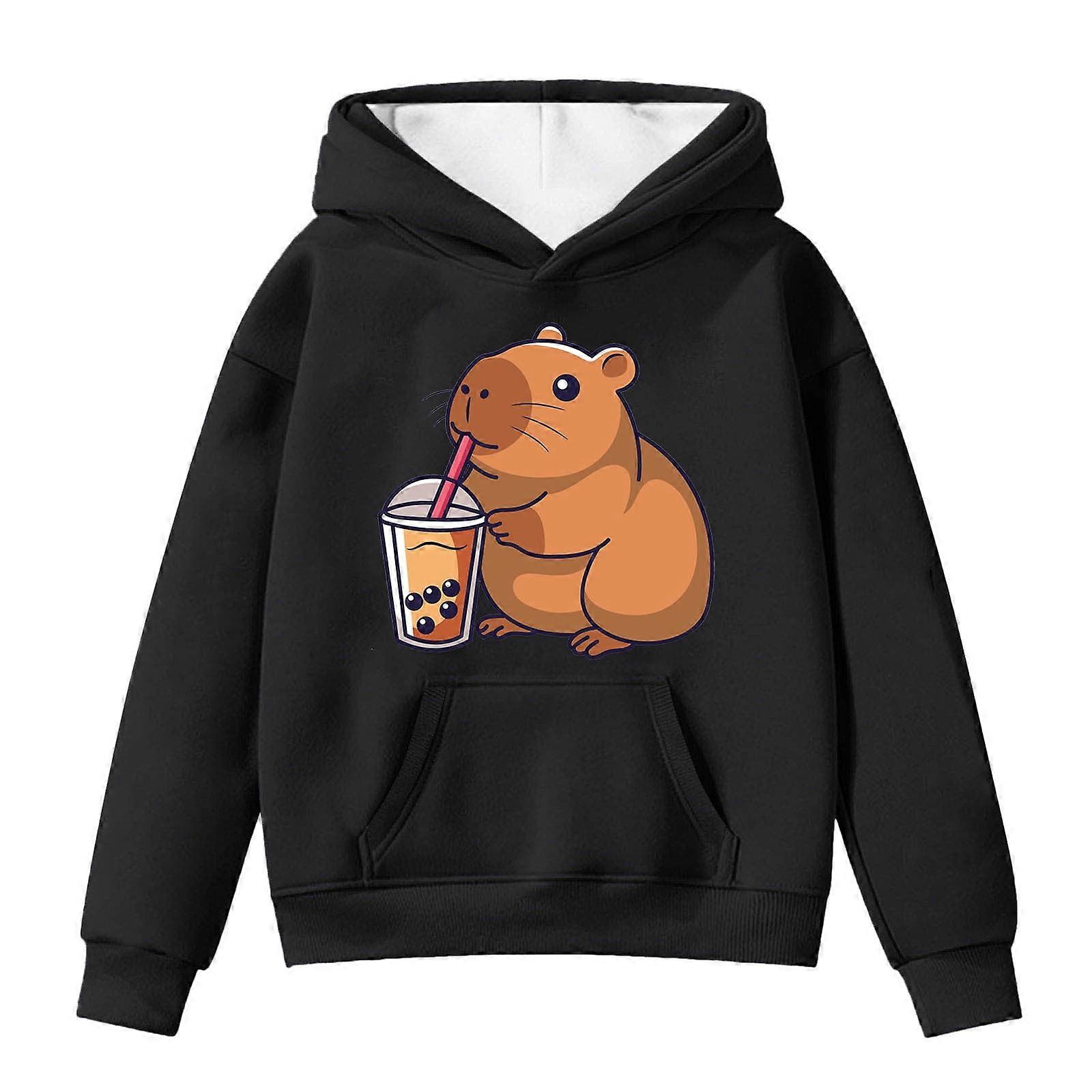 Capybara Print Hooded Sweatshirt for Toddlers, Drop Shoulder, Loose Fit with Pockets, Compatible with Kids Sizes 12-13
