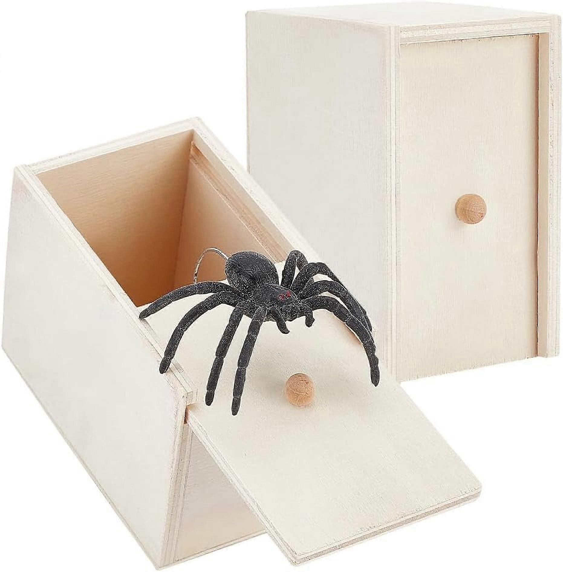 Spider Prank box Wooden Fun Surprise Happy box Gags Practical Joke Scare Toys Novelty Gifts for Friends BurlyWood 92x58x64mm