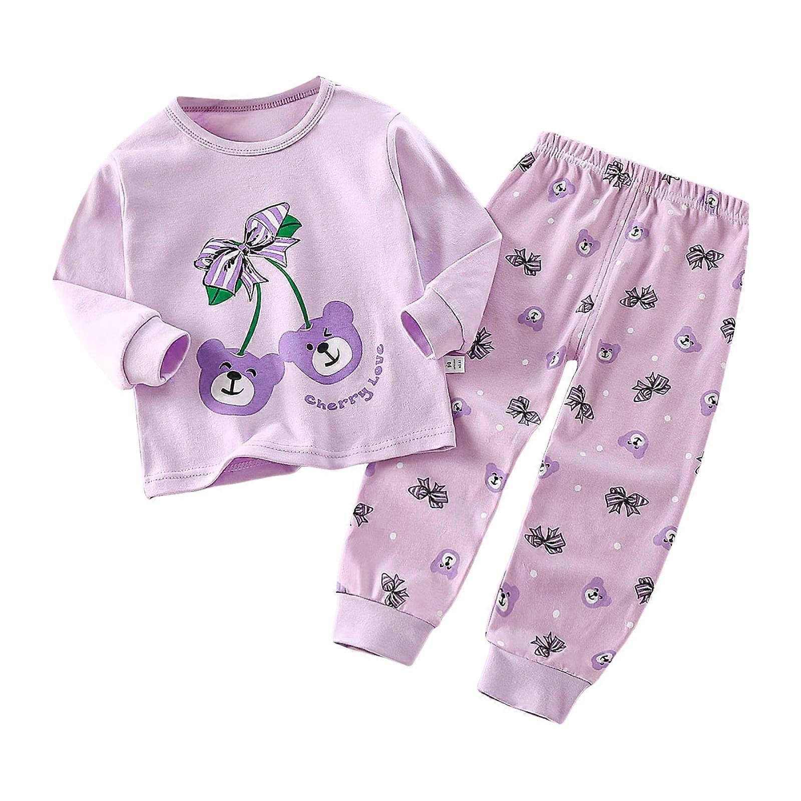 Boys Girls Clothes Baby Toddler Pajamas Fall 2-piese Long Sleeve Sleepwear Pj Cartoon Print Allover Pants Light Purple 6-12 Months