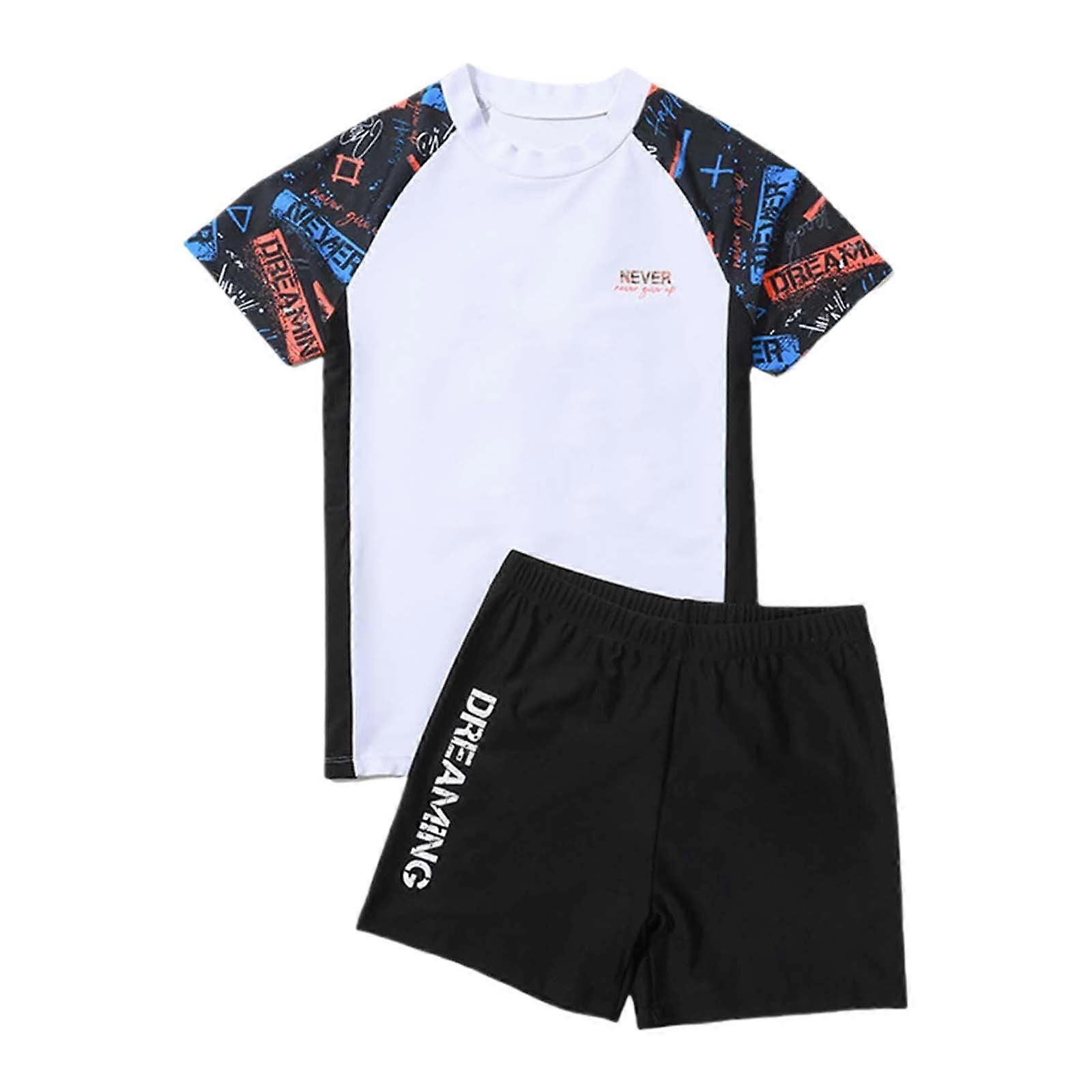 Big Boys' Plus Size Swim Set: Short Sleeve Top + Trunks, Beachwear for Teens 9-10 Years