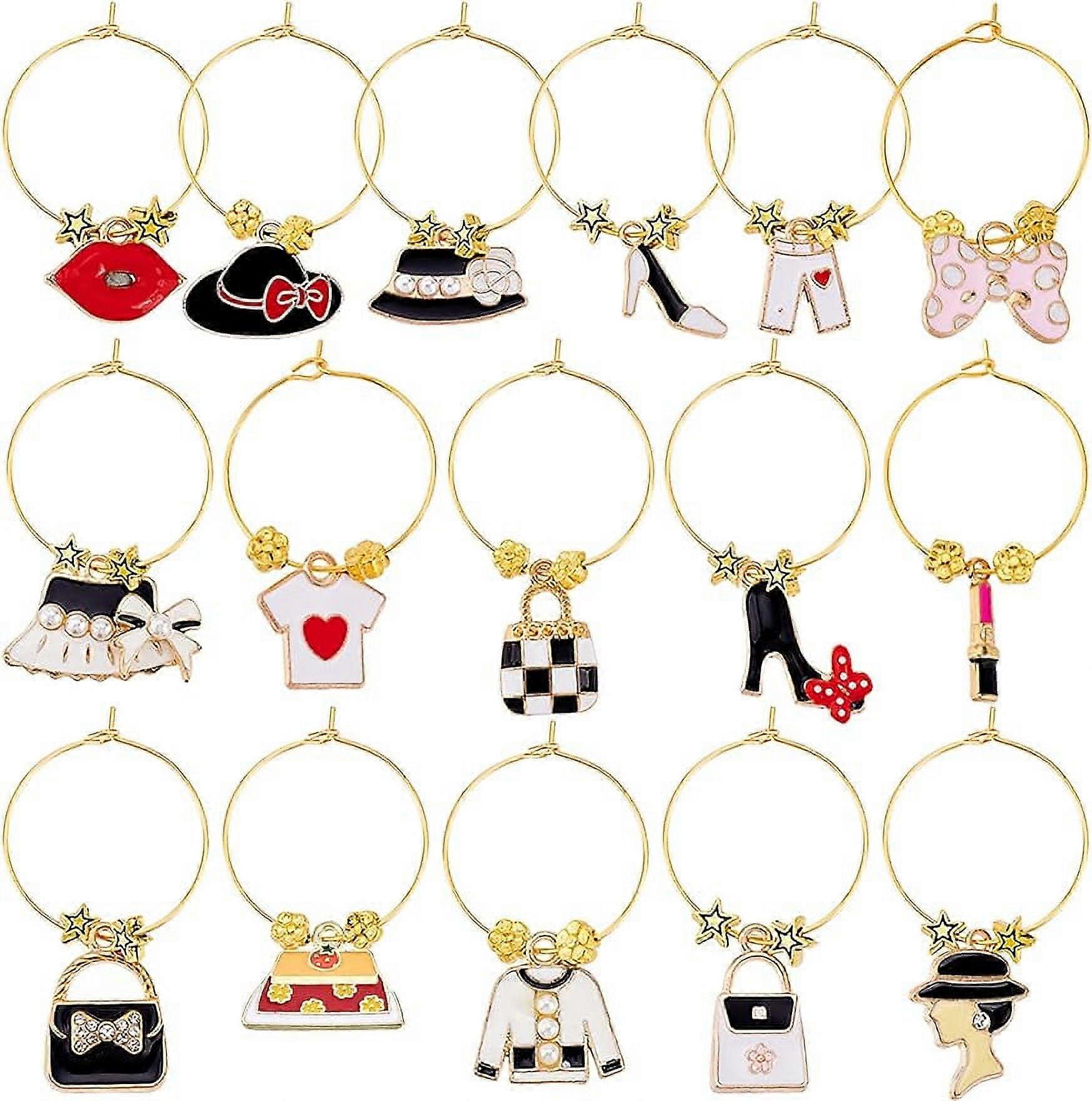 16pc Alloy Enamel Wine Glass Charms + 16 Pendants, 20 Hoop Earrings, 20 Beads – Cocktail/Champagne Party Favors