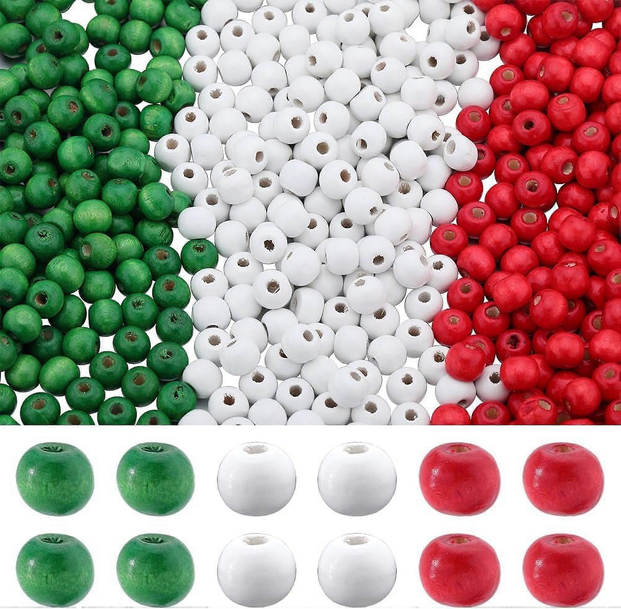 600Pcs 10mm Wooden Christmas Beads (Red/Green), Opaque Round Craft Beads with Hole, Compatible with Jewelry Making & DIY Decor
