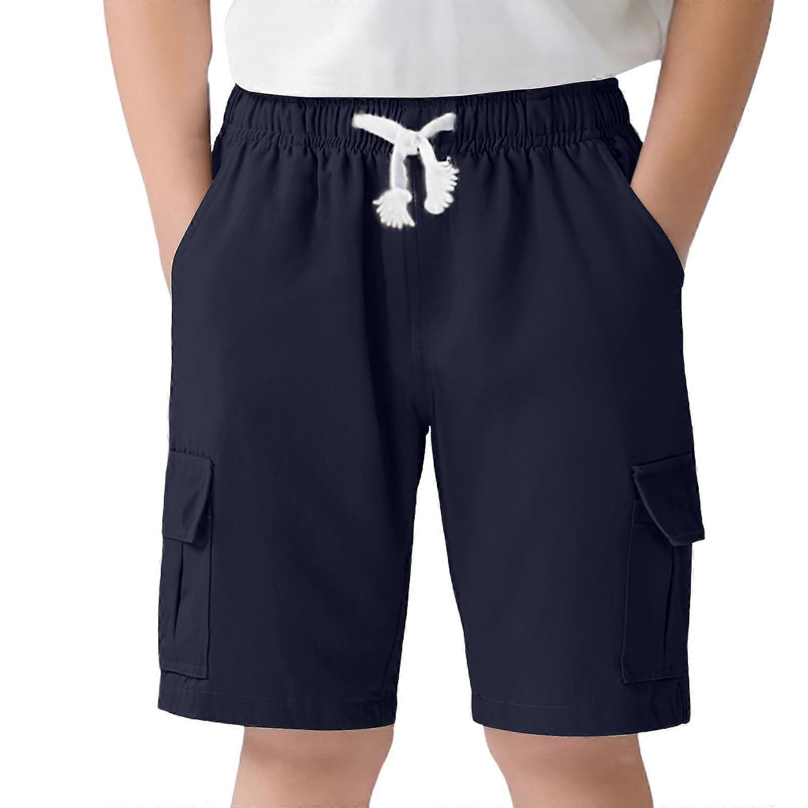Boys School Uniform Shorts Solid Color Elastic Waist Drawstring Dress Shorts With Pockets Child Handsome Party Shorts,Navy,13-14 Years
