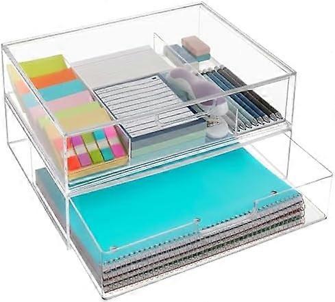 STAX Clear Stackable Organizer Drawers (2-Pc Set) – 12.5" Wide, 1 Open + 1 Divided | Desk & Paper Organization | Made in USA