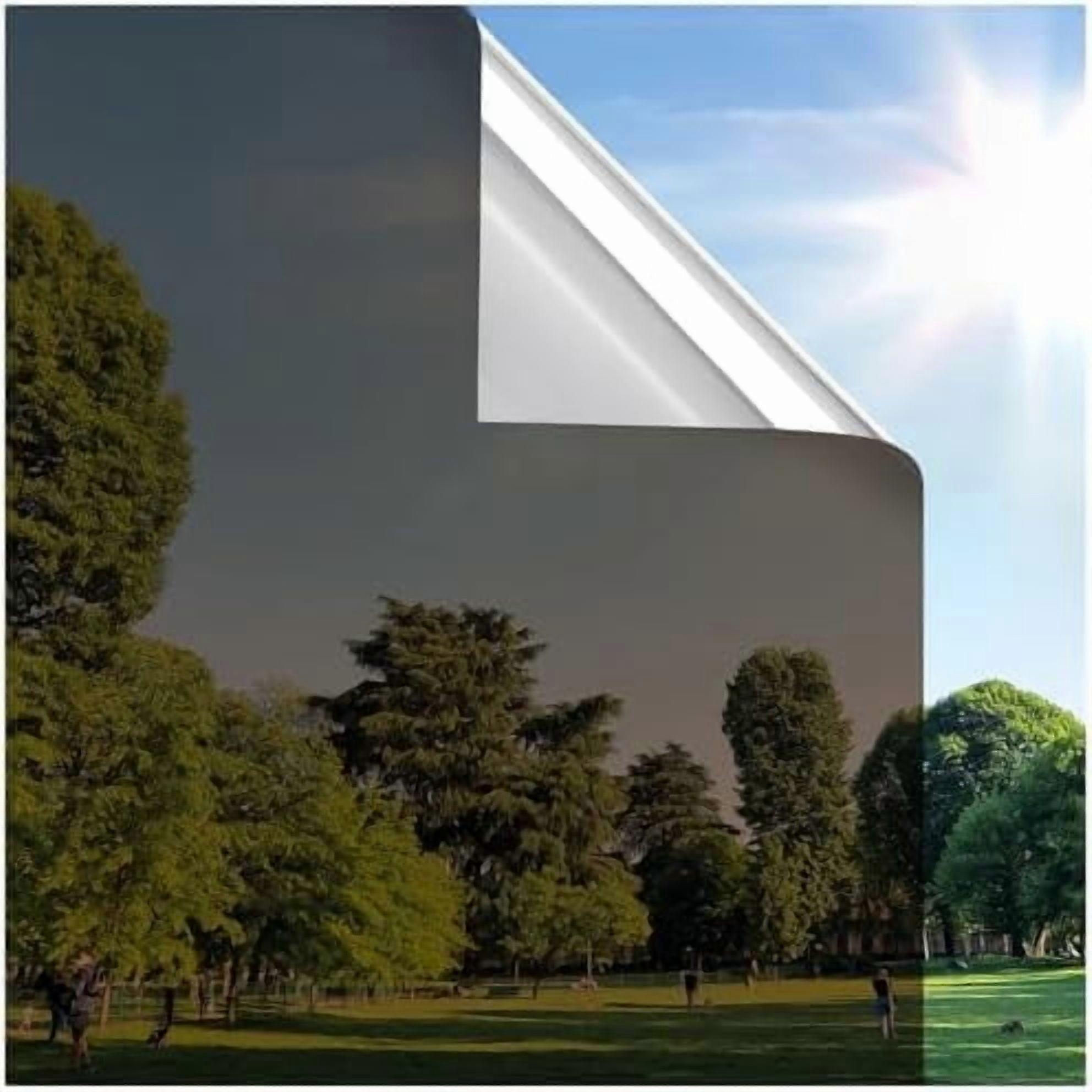 One Way Window Privacy Film, Removable Reflective Heat & UV Blocking, Compatible with Home/Office Glass Doors, 17.5" x 6.5 ft, Brown/Silver