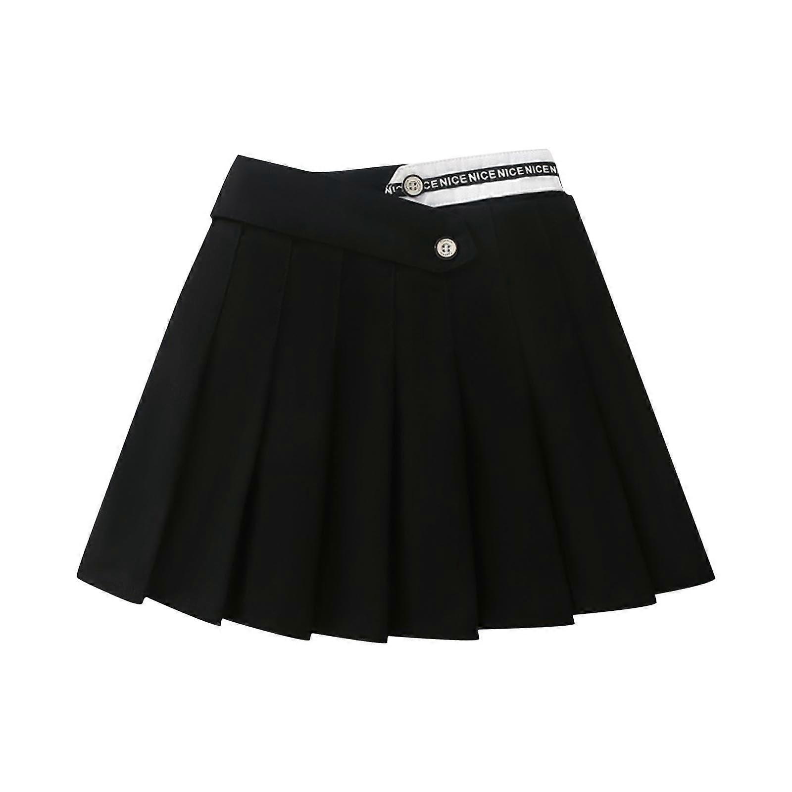 Uniform Skirts for Girls,Girls Skorts,Girls Pleated Skirt Kids Tennis Elastic Waist Uniform Plaid Skirt Black 8-9 Years
