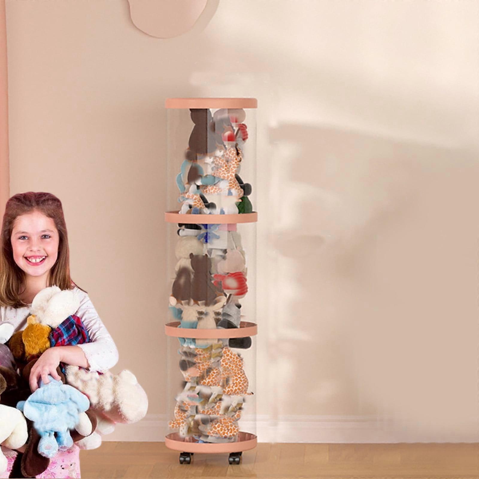 3-Layer Rotating Stuffed Animal Storage Tube with Wheels – Transparent Vertical Toy Organizer Tower