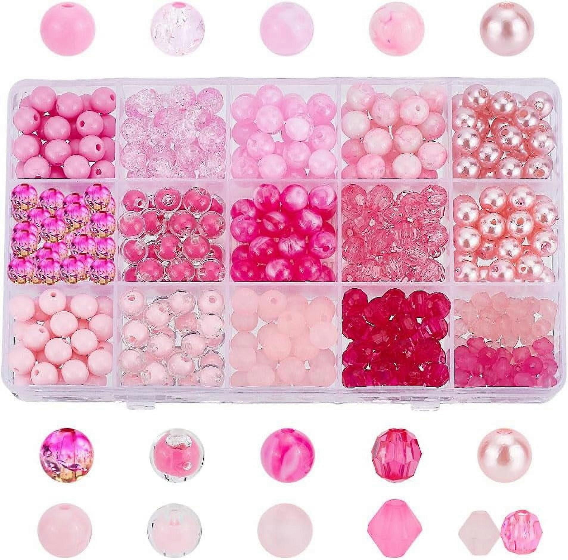 430pcs Acrylic Pink Beads 16 Styles Valentine Beads Assorted Spacer Beads Chunk Bubblegum Ball Beads Round Smooth Beads