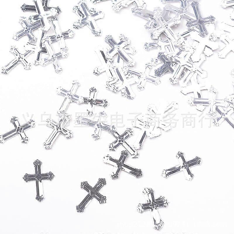 Baptism Confetti Glitter Cross Table Decor – Silver, Compatible with Baptism, First Communion, Baby Shower & Gender Reveal
