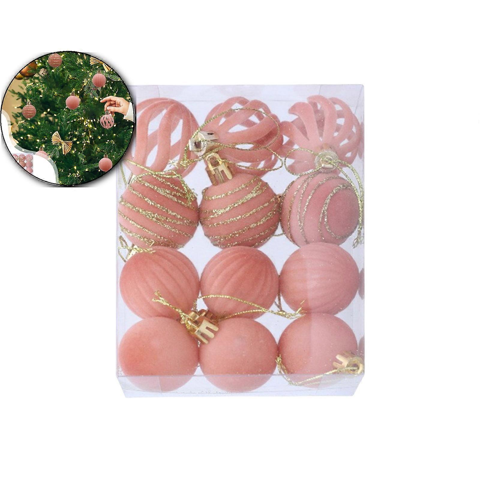 12 Pcs Small Flocked Velvet Christmas Ball Ornaments for Tree – Plastic Handmade Xmas Decor, Compatible with All Tree Sizes