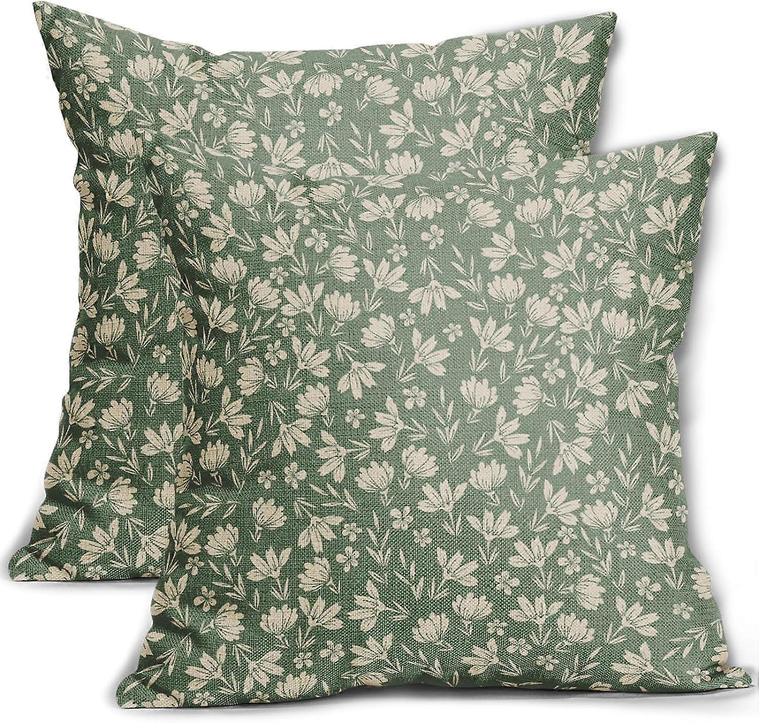 Spring Sage Green Pillow Covers 16x16, Set of 2, Vintage Floral Rustic Design, Outdoor & Indoor Decor, Compatible with Standard Cushions