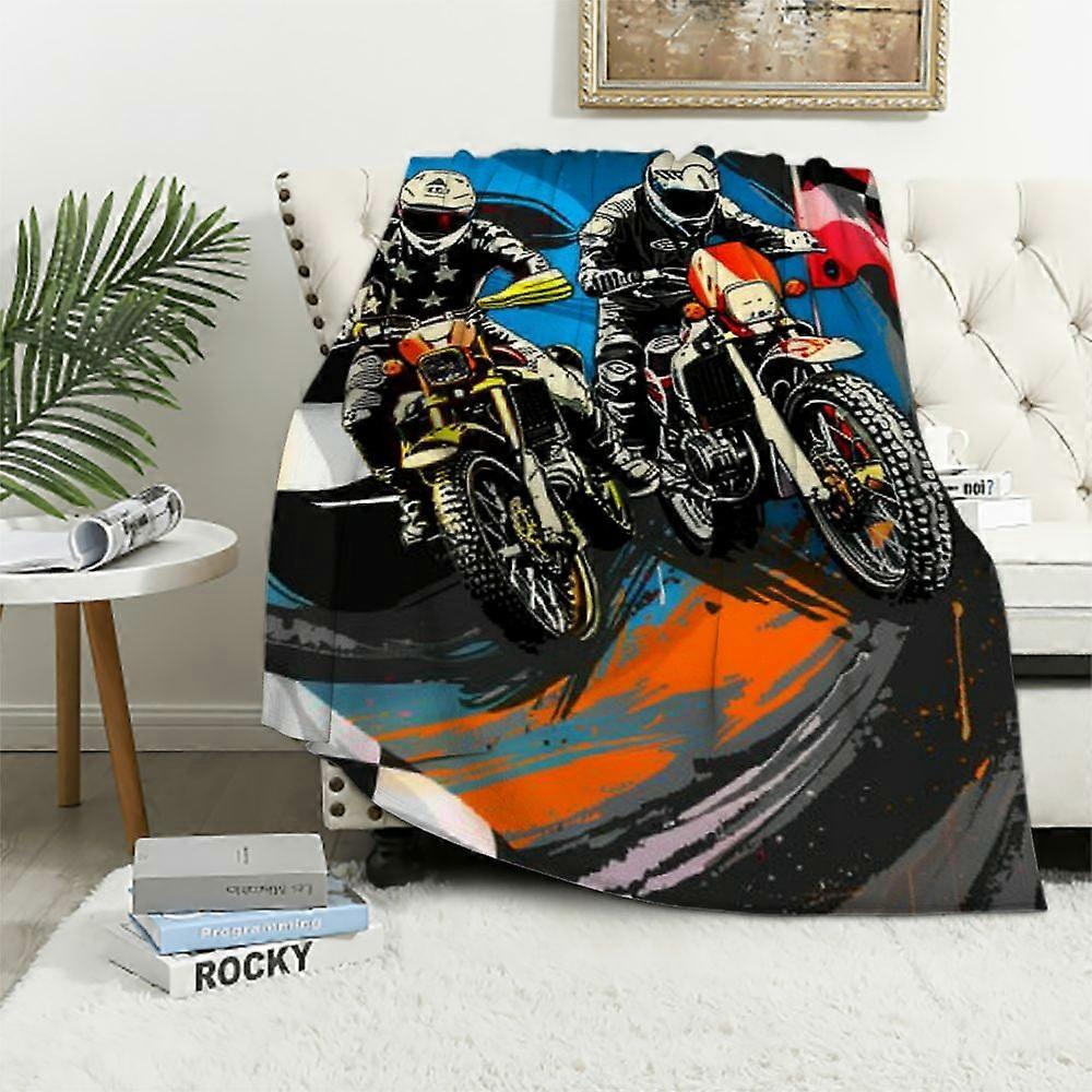 Patifu Dirt Bike Sherpa Blanket, 50x60", Fleece Throw for Kids, Compatible with Motocross & Biker Themes, White