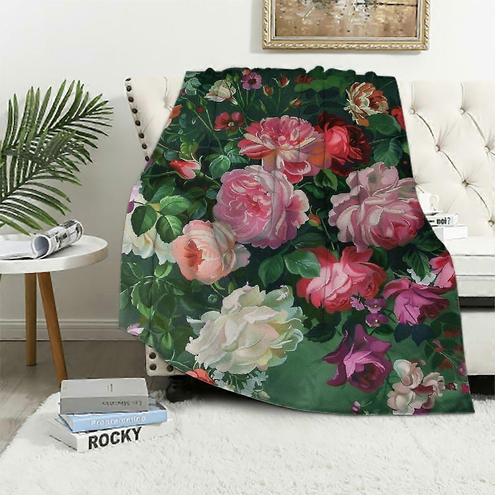 Retro Floral Garden Rose Throw Blanket – Compatible with Women, Mom, Wife, Sisters, Kids – Halloween, Mother’s Day, Spring Decor