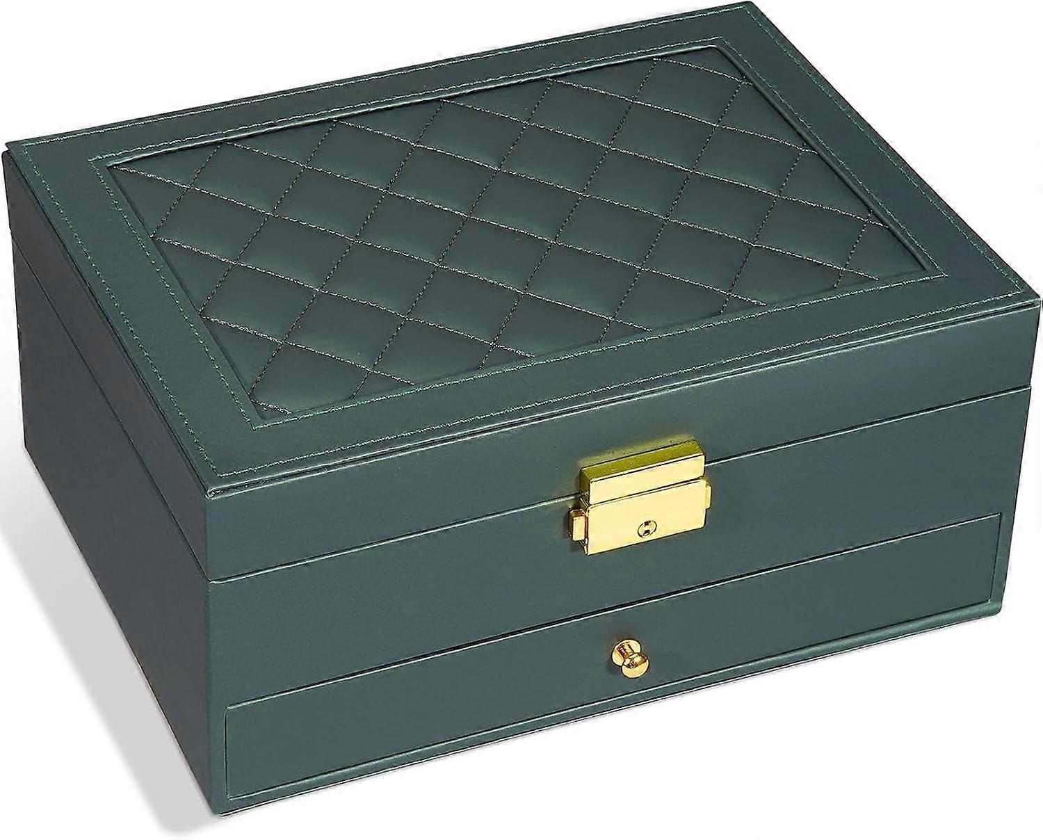 Large 2-Tier PU Leather Jewelry Box for Women – Earrings, Bracelets, Rings, Watches Organizer (Hunter Green)