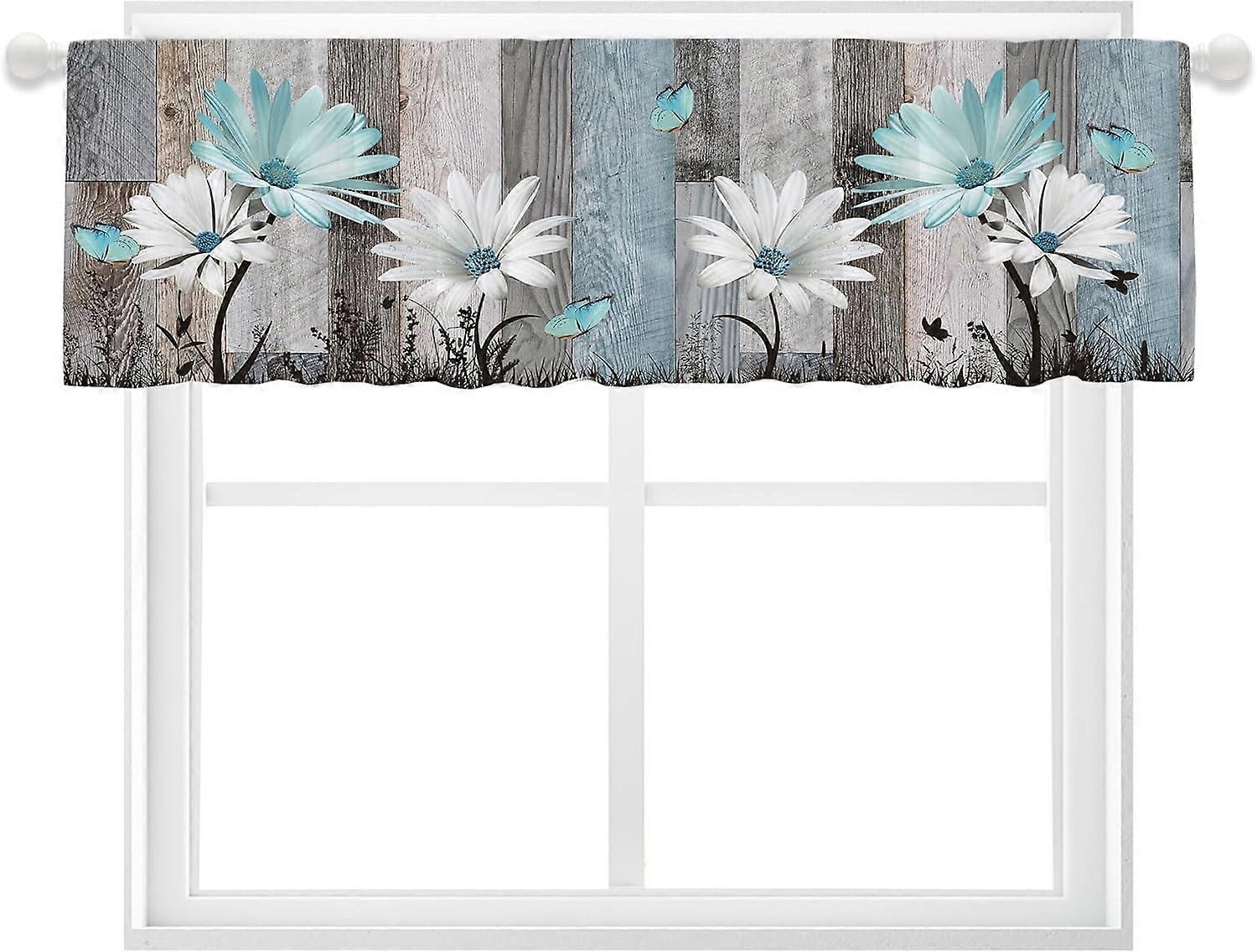 Farmhouse Floral Kitchen Valances – Teal Daisy Window Topper, 1 Panel (55x18"), for Kitchen, Bathroom, Living Room, Bedroom, Laundry Room