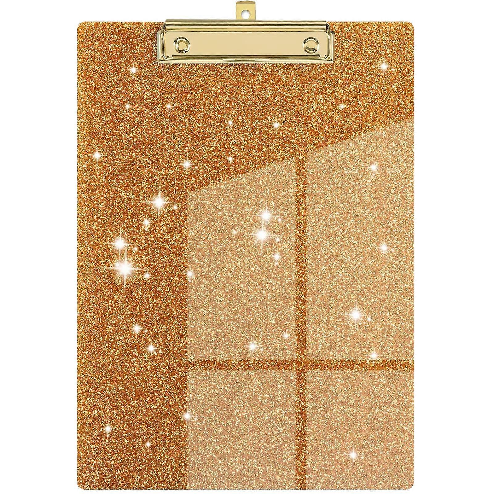 Acrylic Glitter Clipboards, Sparkly Board with Low Profile Gold Clip, Designed for Teacher and Office Use, Orange