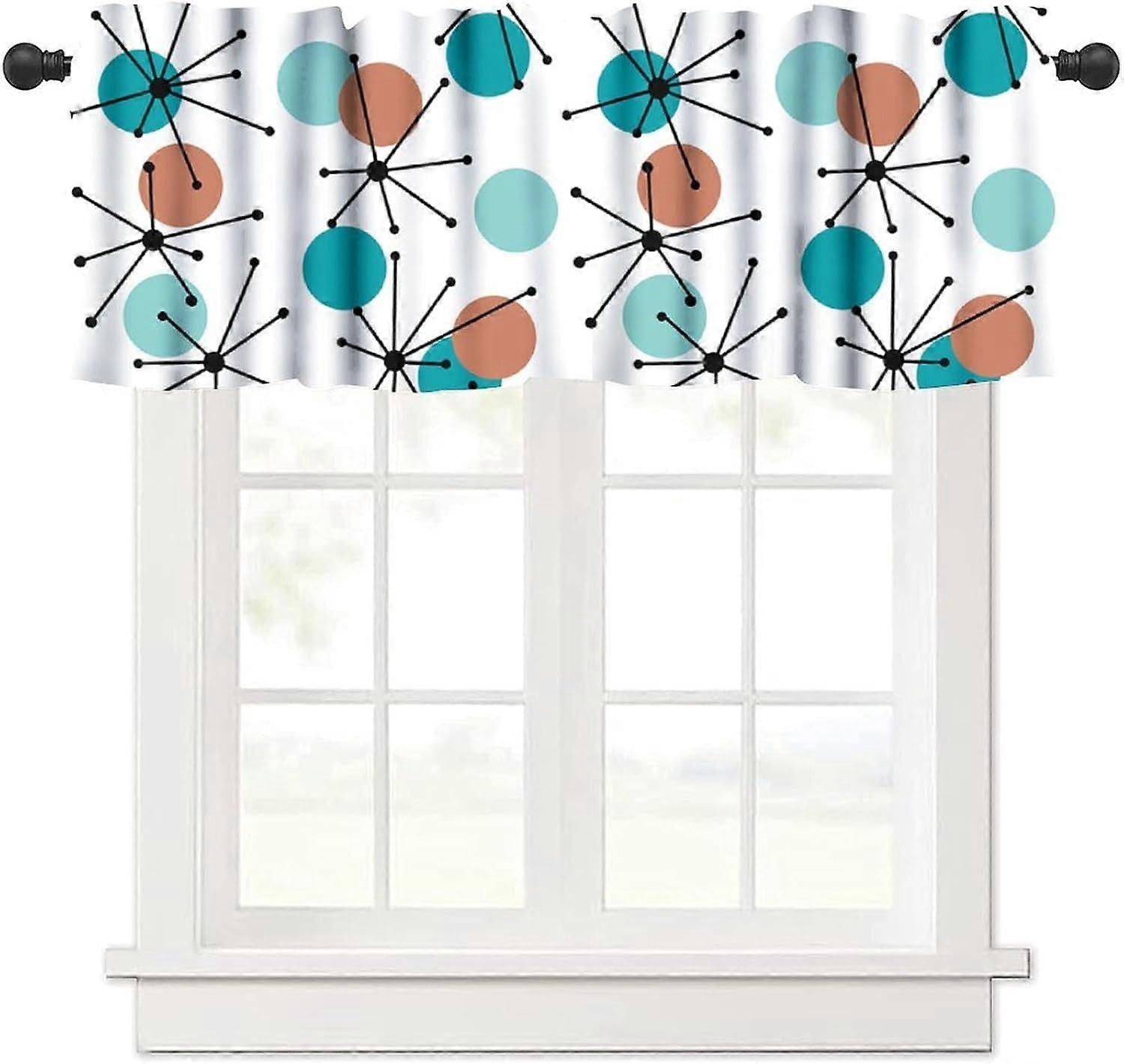 Mid-Century Modern Valance Curtain, Retro Abstract Boho Geometric Atomic Art Print, W54xL18in, 1 Panel
