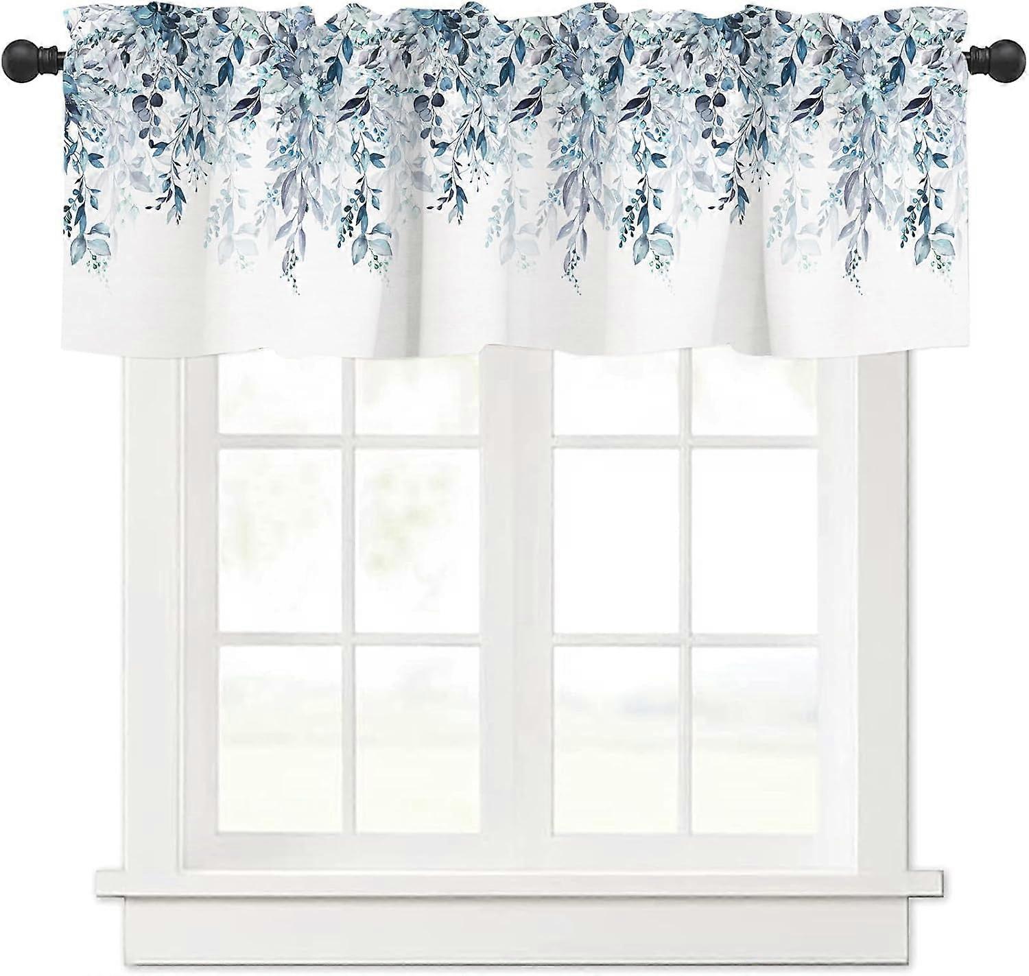 Sage Floral Kitchen Valance | Blue Eucalyptus Leaves Retro Window Treatment | 54" x 18" | Stylish for Living Room, Bedroom, Farmhouse