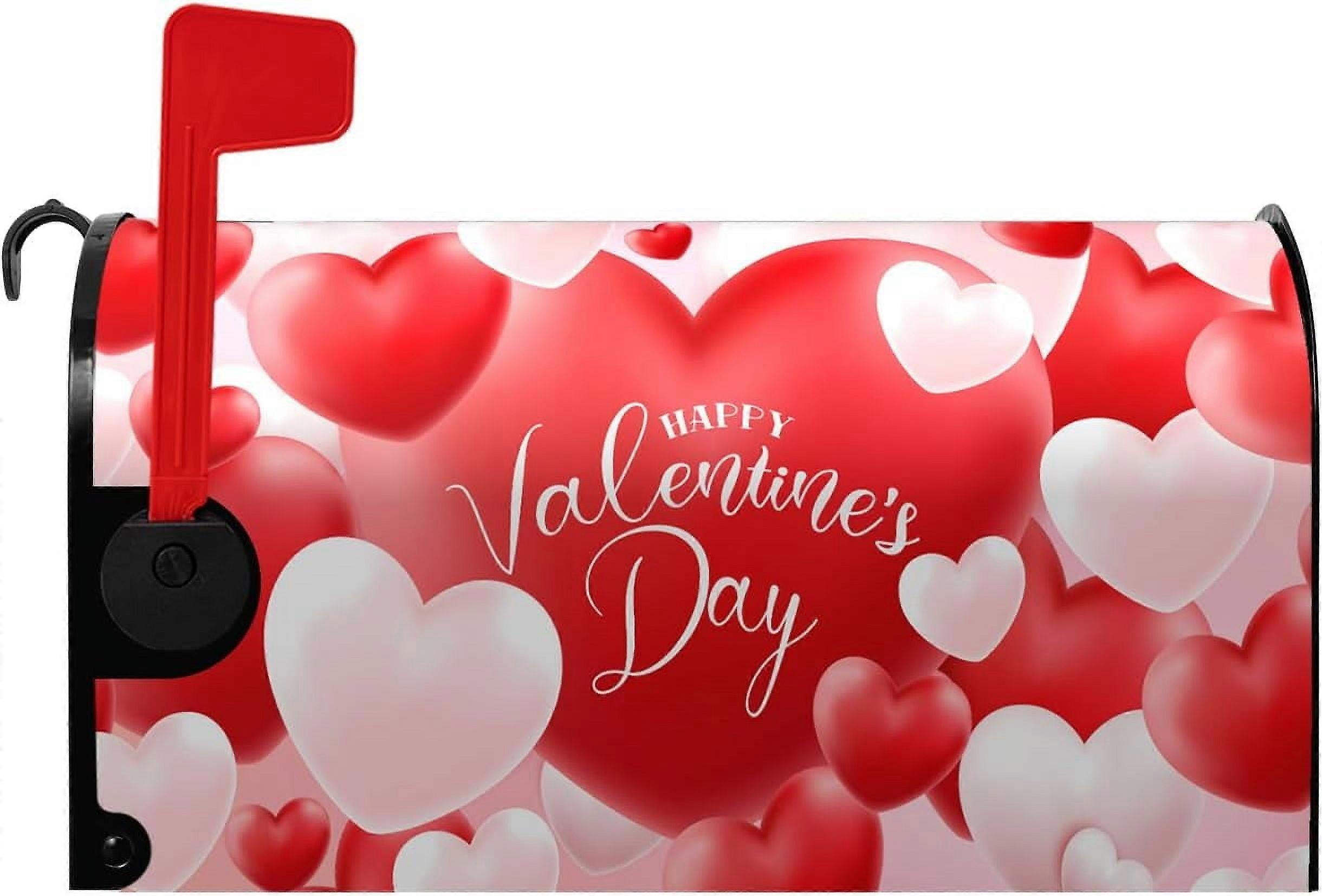 Valentine's Day Magnetic Mailbox Cover, Red Heart & Floral Design, Waterproof, 21x18 Inch, Compatible with Standard Mailboxes
