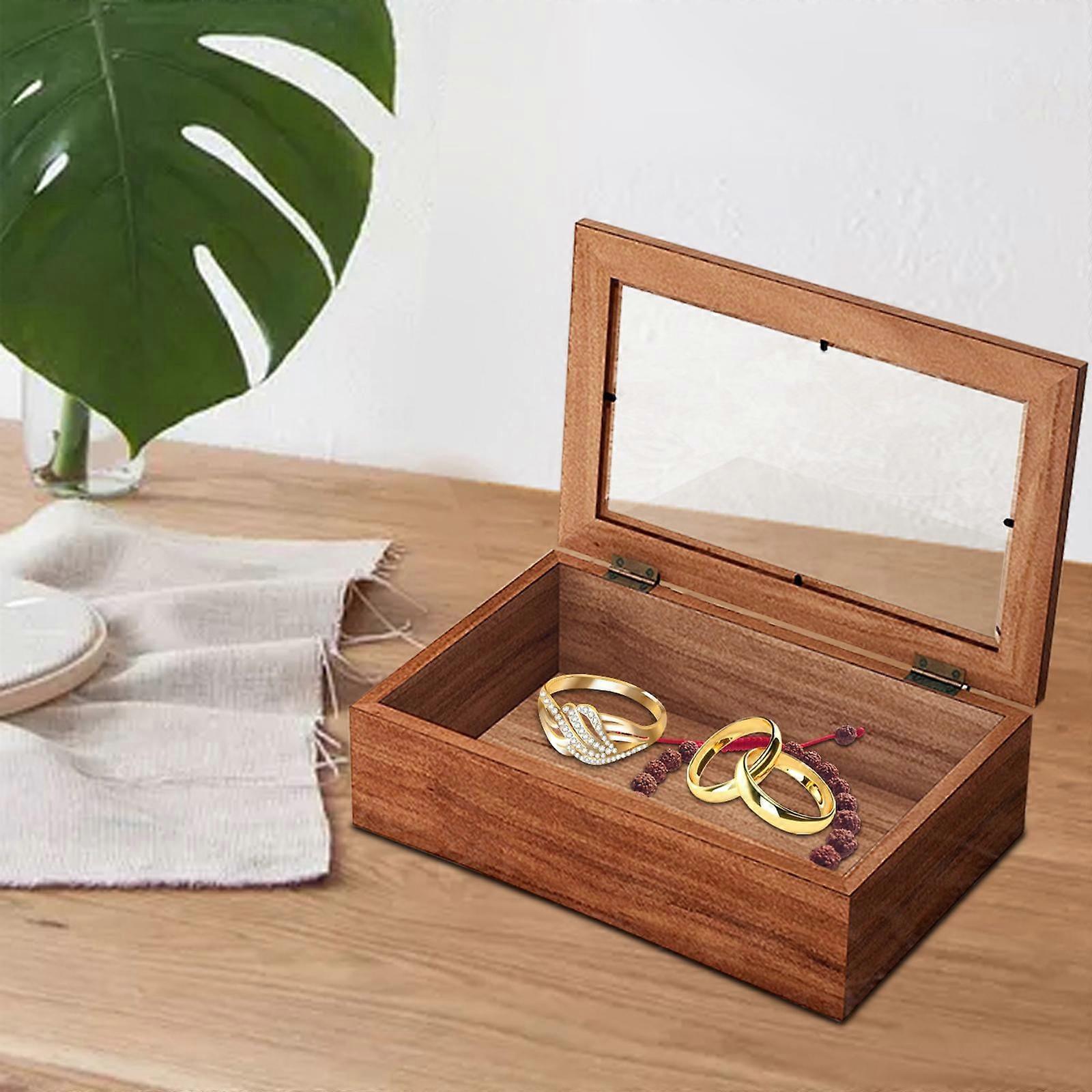 Vintage Wooden Storage Box with Glass Lid, Keepsake Box Decorative Storage Box for Jewelry, Trinket, Gift and Home Decoration M