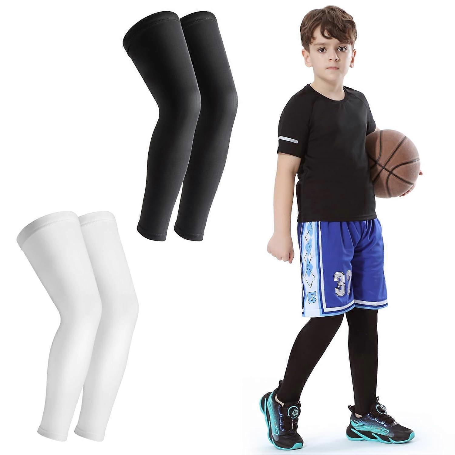 Kid Leg Sleeve 2 Pairs, Long Compression Leg Sleeve for Youth Boy Girl Basketball Soccer Football