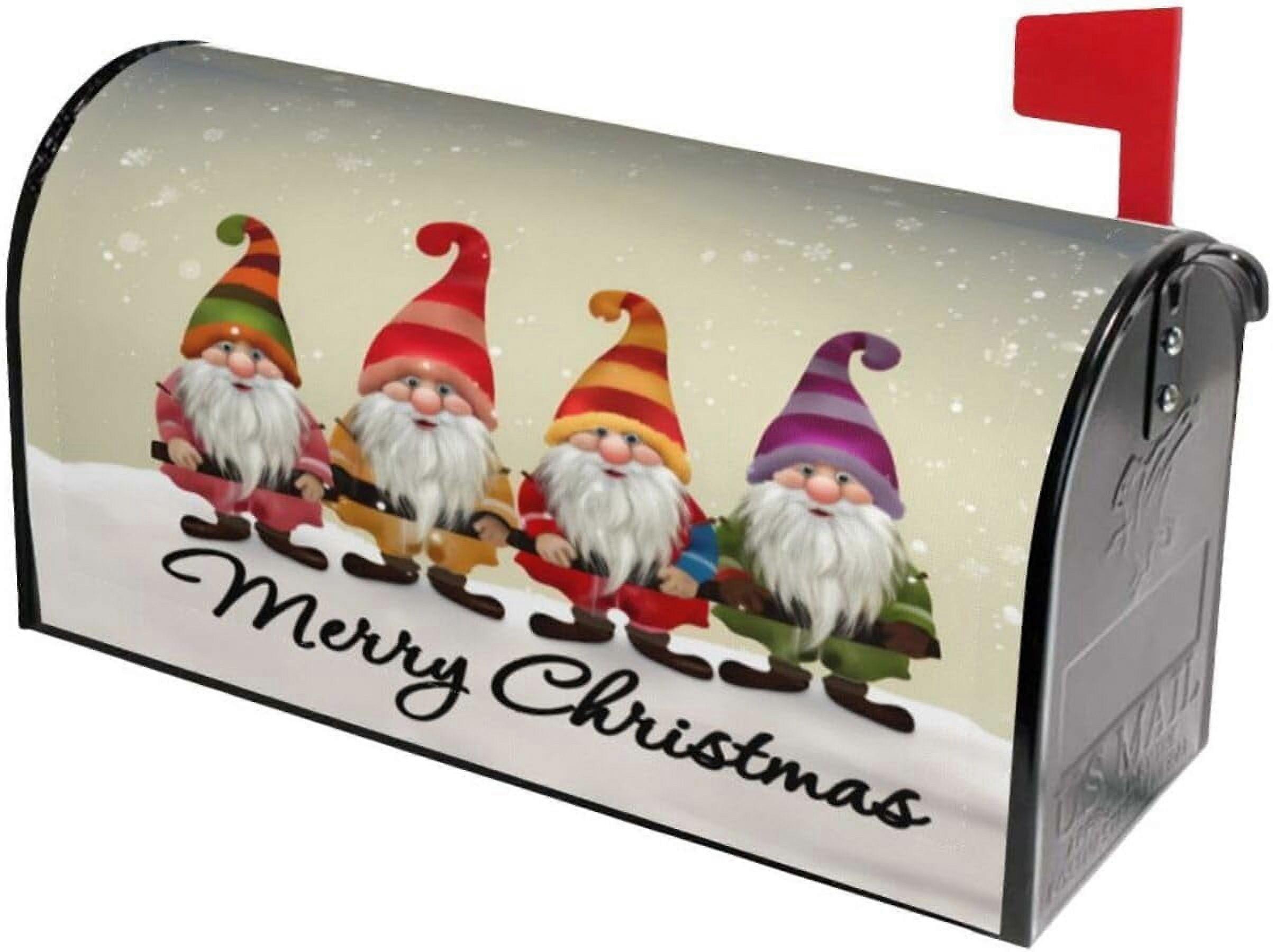Christmas Winter Gnomes Mailbox Covers Magnetic Post Box Cover Wraps Standard Size 21x18 in Inches for Garden Yard Décor