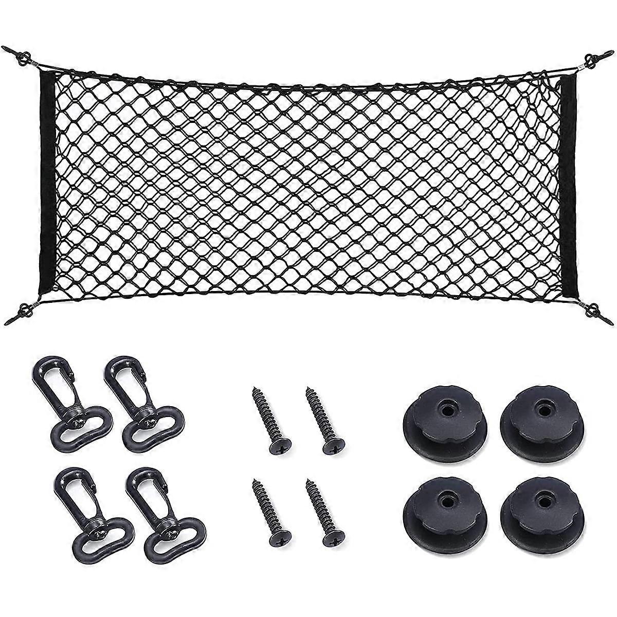 35.5 x 15.7 Inch Rear Cargo Net Adjustable Elastic Mesh Storage Trunk Storage Hooks and Screws for Car SUV Truck Van