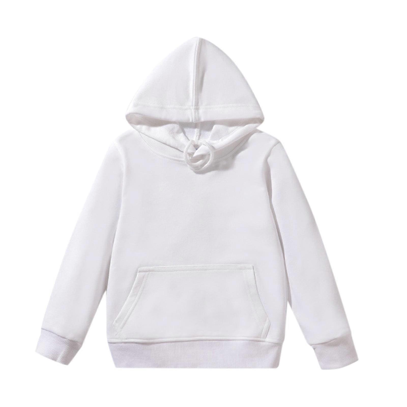Children's Hooded Sweatshirt Pullover Hoodies Long Sleeve Solid Color Sweatshirt Boys Girls Hooded Kangaroo Pocket Pullover Hoodies Z1-White 3-4 T